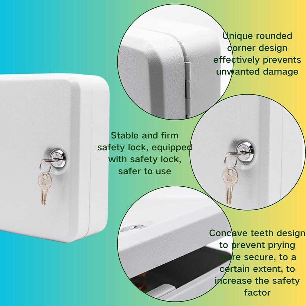 • الجودة الممتازة: صندوق القفل الخاص بنا مصنوع من الصلب ، مما يضمن الأمان والمتانة على المدى الطويل. يضمن بناءها القوي الحماية مدى الحياة لمفاتيحك
