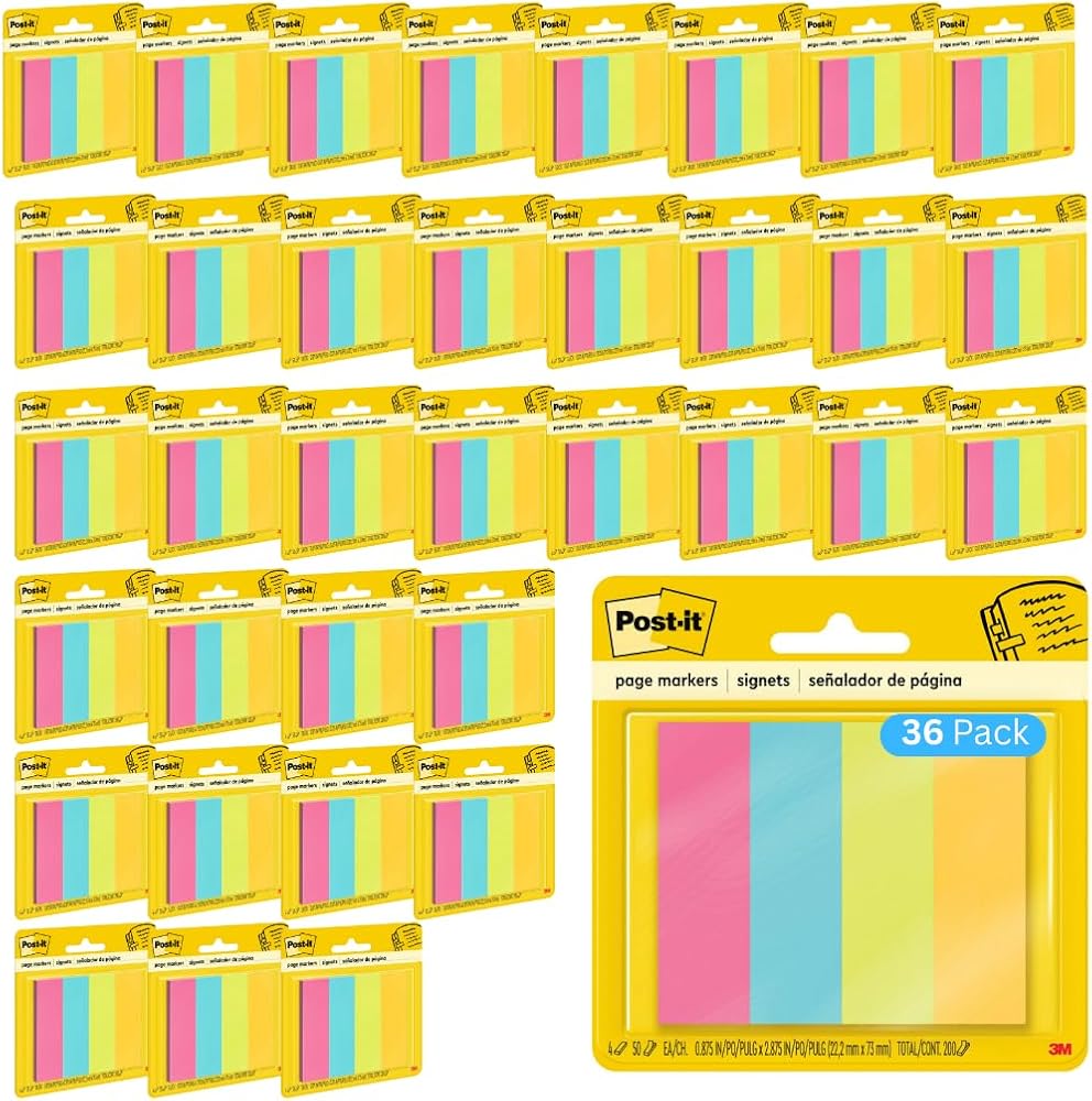 علامات صفحة ما بعدها ، ألوان متنوعة ، 1 في × 3 بوصة ، 50 ورقة/وسادة ، 4 وسادات/حزمة (671-4AU) in Kuwait