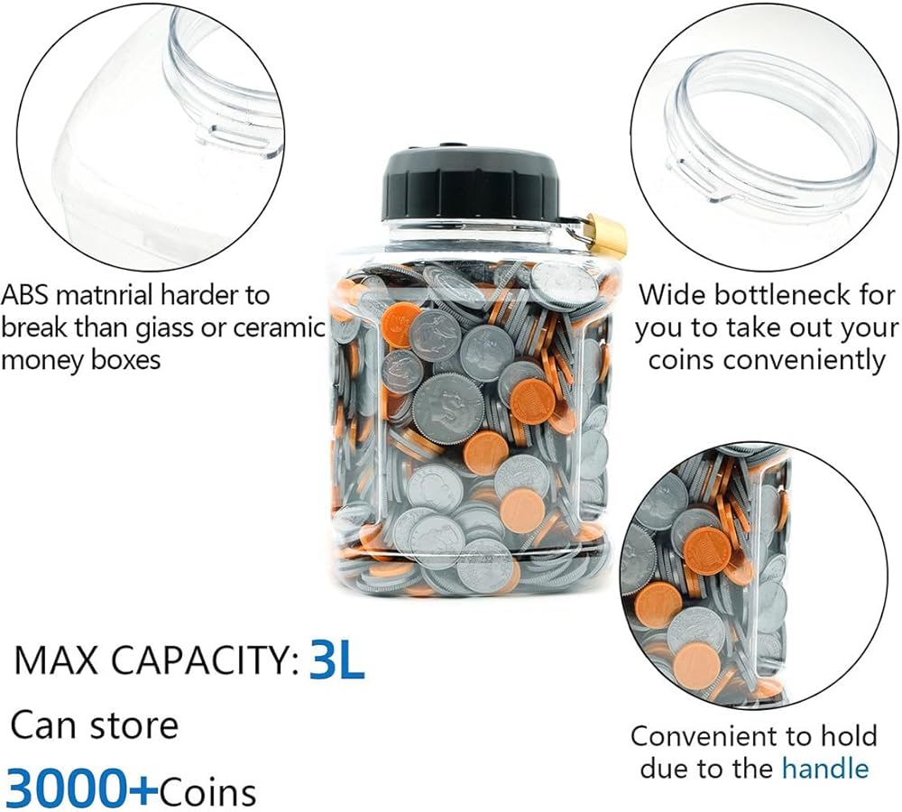 【مصمم لجميع العملات المعدنية الأمريكية】إصدار جديد 2023، سعة كبيرة جدًا تصل إلى 3.6 لتر، يمكن لبرطمان العد الرقمي تخزين أكثر من 3000 قطعة نقدية. يقبل بنك العد الرقمي جميع العملات المعدنية الأمريكية ويعمل ببطاريتين ايه ايه ايه (غير متضمنتين).