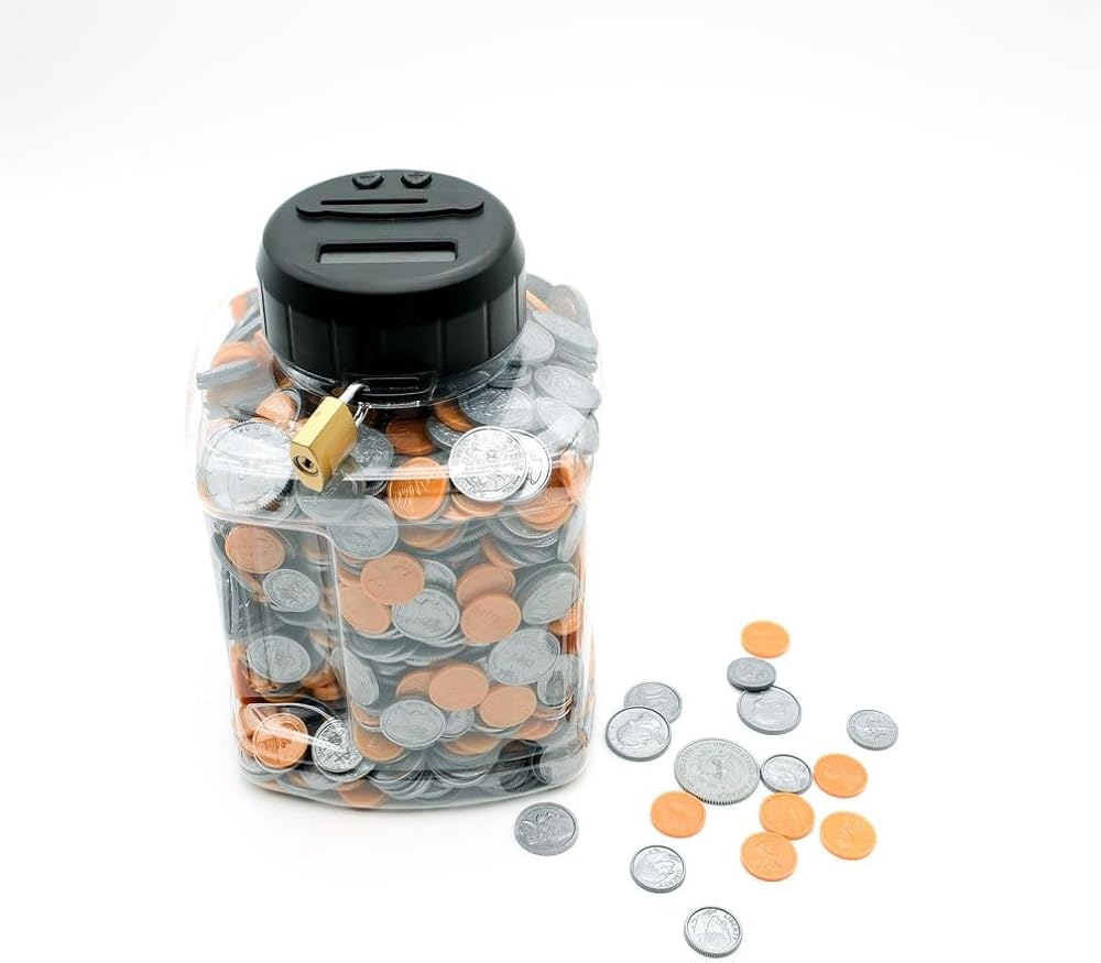 【اجعل الرياضيات ممتعة】: يعد بنك العملات الرقمية طريقة عملية وتعليمية وجذابة للأولاد والبنات لتعلم أساسيات الجمع والطرح! يمكن لأطفالك تمرير عملاتهم المعدنية من خلال فتحة العملات المعدنية بالغطاء وتظهر شاشة LCD الرقمية مقدار ما وفروا لهم! يمكن للأطفال أيضًا إضافة أو إزالة العديد من العملات المعدنية من البرطمان ثم الضغط على أزرار +/- للكشف عن إجمالي مقدار التغيير الذي تم وضعه أو إخراجه.