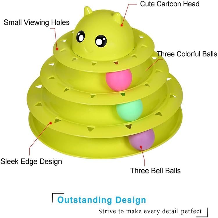Detachable 4 Level: Multi-level durably turntable interactive cat toy with cute cat head shape on the top level. Fun to entertain your cat for hours.