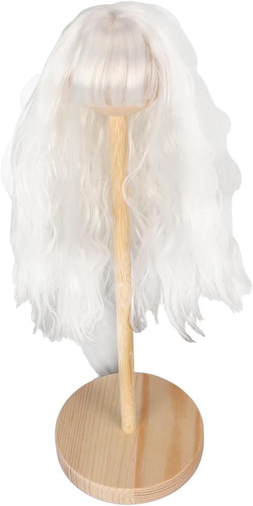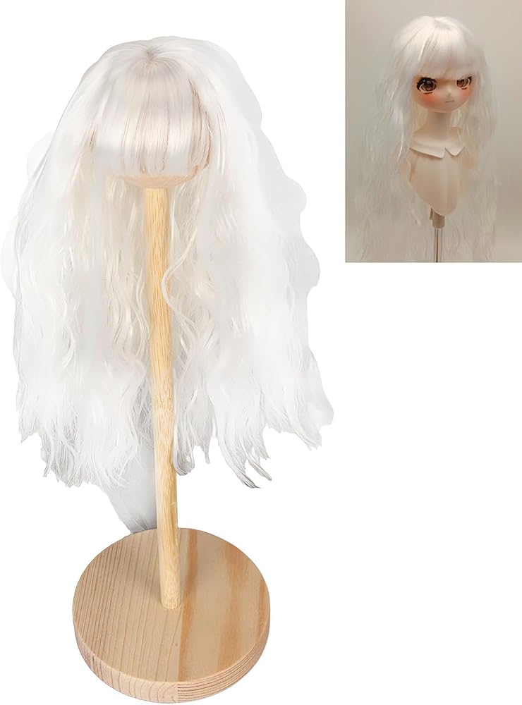 تيسستنج دمية شعر مستعار ، قمر أبيض 1/6 BJD DOLL الباروكات مصطنعة عالية درجة الحرارة حرير الشعر طويلة مجعد الدمية لمدة 1/6 15.5‑17 سم دمية رأس (بدون حامل)