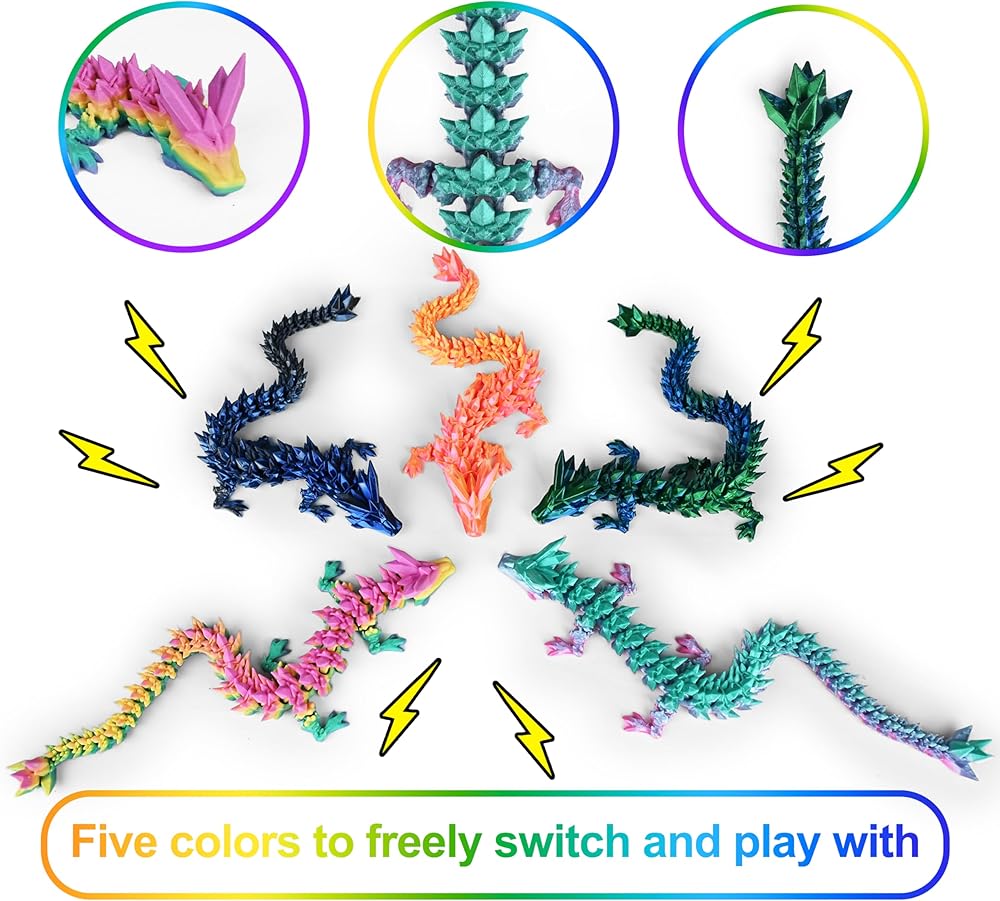 [مواد عالية الجودة] مصنوعة من البلاستيك PLA متين وصديقة للبيئة ، هذه التنينات خفيفة الوزن ولكنها قوية. يسمح تصميمهم المفصلي بطرات قابلة للتعديل ، مما يجعلها ليست جذابة بصريًا فحسب ، بل أيضًا تفاعلية وممتعة مثل ألعاب تململ.