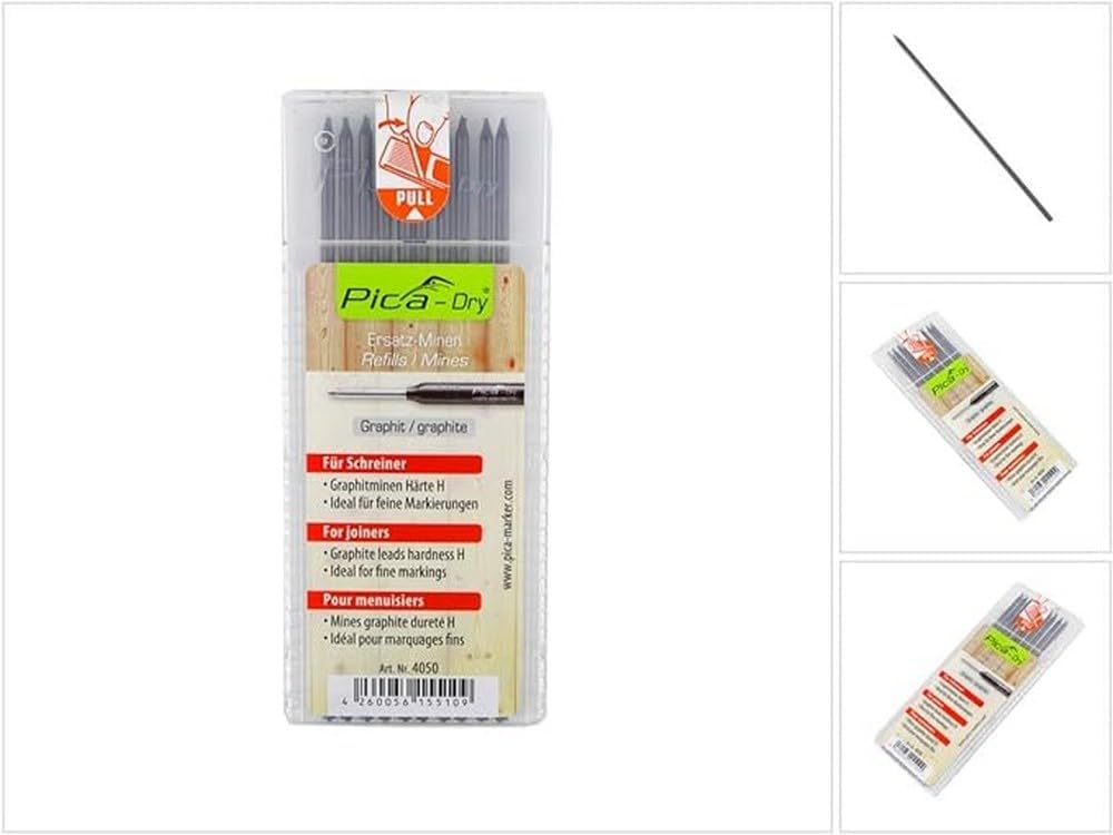 This bundle pairs a Pica 30403 marker kit and lead case with a pack of 10 Pica-Dry graphite H leads. The marker kit provides a versatile set of marking tools while the graphite leads are ideal for making fine markings on dry surfaces. With no need to wipe clean, the 2.8mm diameter, 125mm long graphite leads allow carpenters, joiners and other tradespeople to efficiently mark measurements before cutting or assembling.