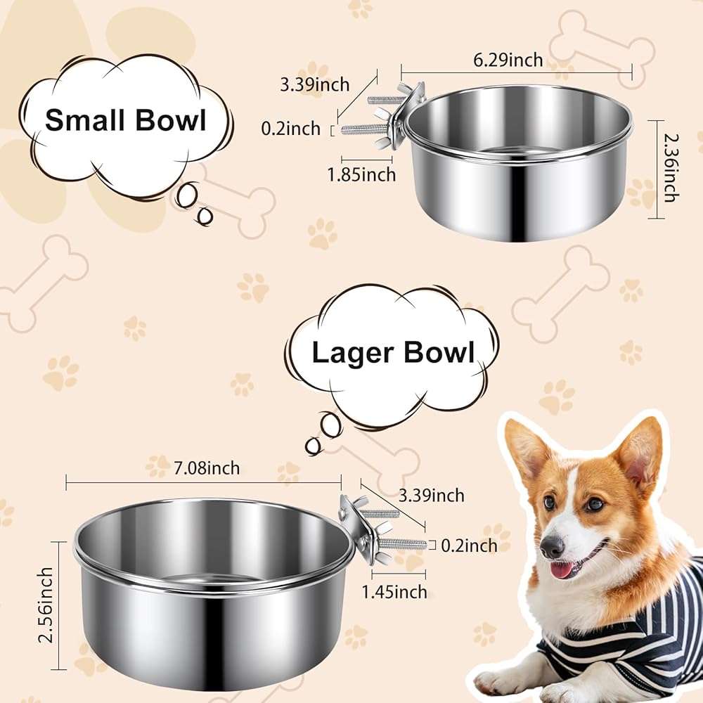 【أوعية اثنين من الأوعية للكلاب للطعام والماء】 تأتي أوعية الكلب من الفولاذ المقاوم للصدأ في أحجام مختلفة. أكبر واحد هو 7.1 "H و 3.7" W ، والذي يمكن استخدامه لعقد الماء. الأصغر هو 6.3 "H * 2.6" W بوصة ، وهو الحجم المثالي لعقد الطعام.