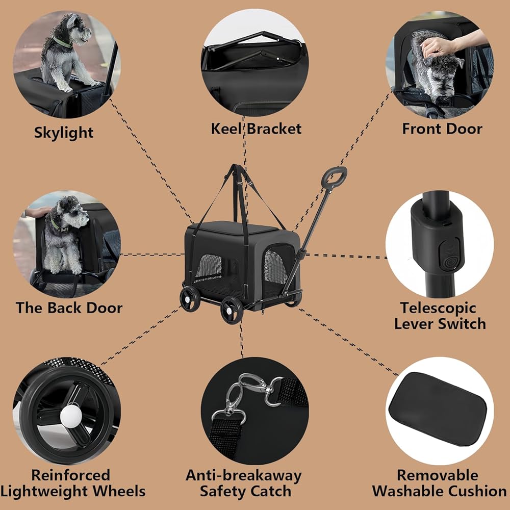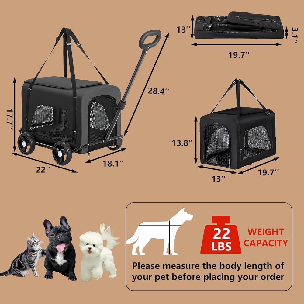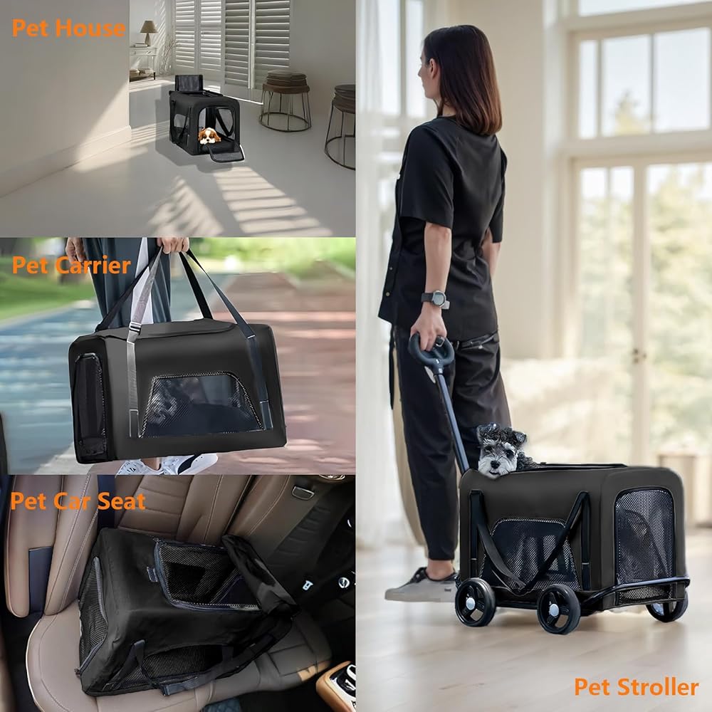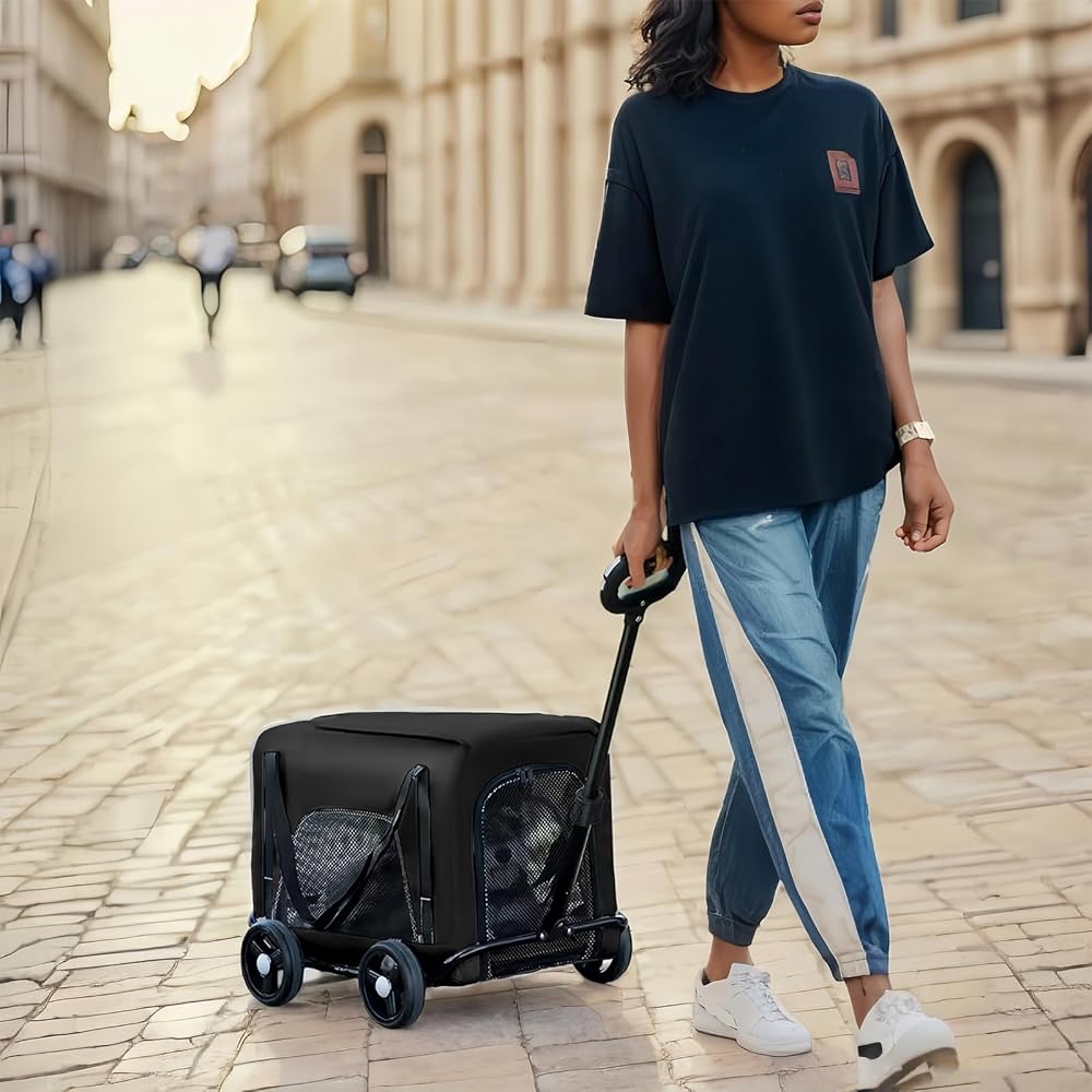 استخدامات متعددة: تجمع عربة الحيوانات الأليفة هذه بين وظائف حقيبة الحيوانات الأليفة ومقعد السيارة في واحدة ، يمكن سحبها باليد عند المشي ؛ مثبتة على مقعد السيارة عند السفر ، وأشرطة قابلة للتعديل لحملها باليد أو على كتفك عند المشي لمسافات طويلة ؛ ويمكن استخدامها كقاعدة سحب صغيرة وحيوانات أليف عند التخييم