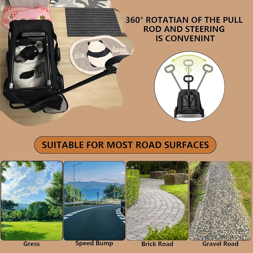 سهل التجميع والطي: يسهل تثبيت عربات القطط هذه للقطط 1 من أجل مالكي الحيوانات الأليفة عديمي الخبرة. يتكشف الإطار الداخلي والموصلات المحملة الزنبركية من السهل توصيل النصفين.