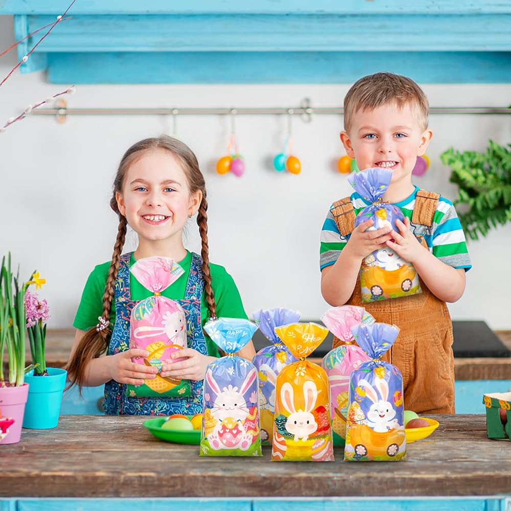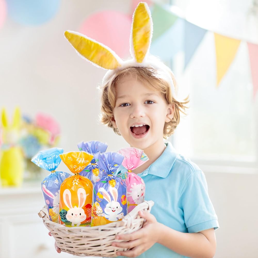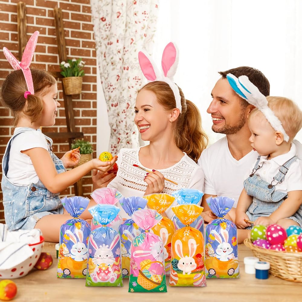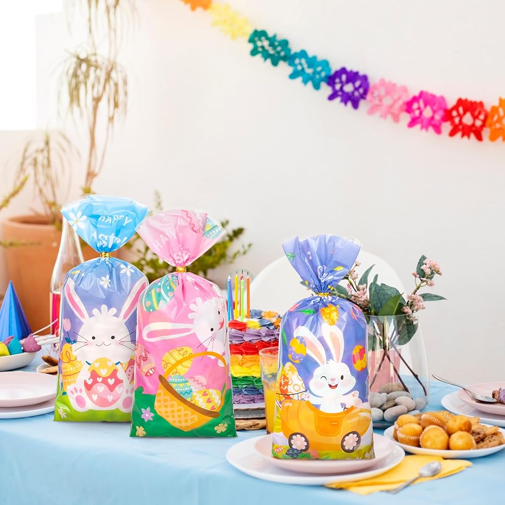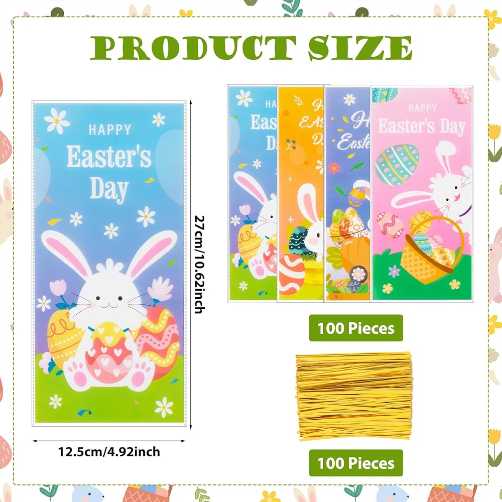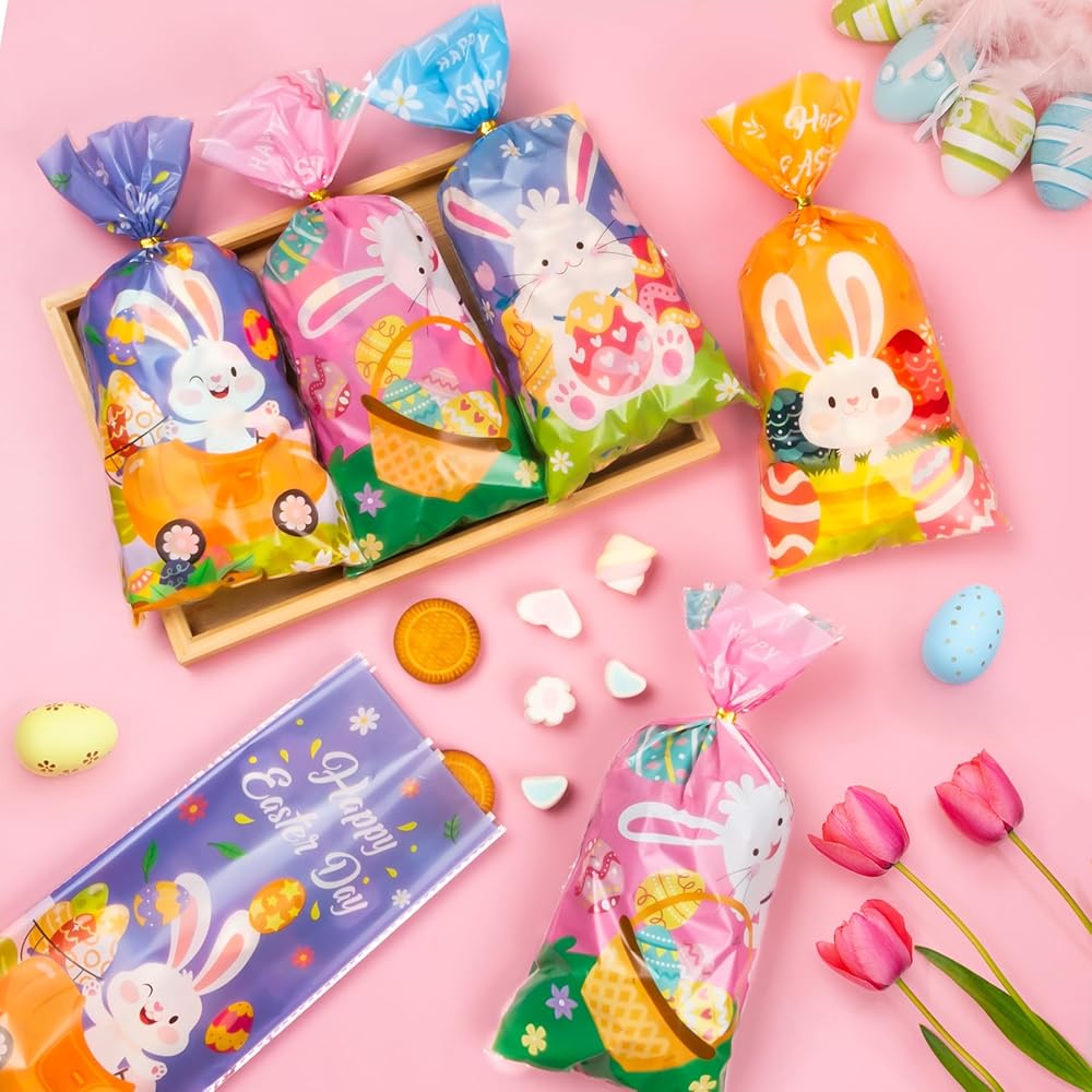 100PCS Cute Easter Cellophane Treat Bags for Easter Party Favor Supplies