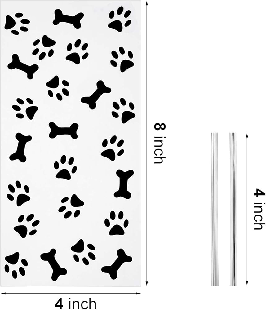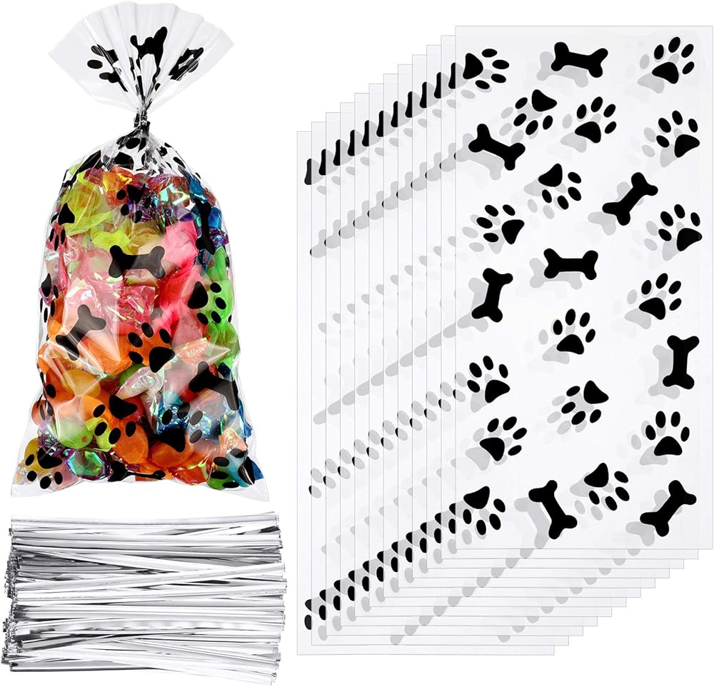 Package includes: you will get 100 pieces paw cellophane bone print bags and 200 pieces twist ties, that's enough for your usual or party use
