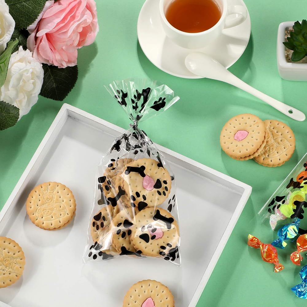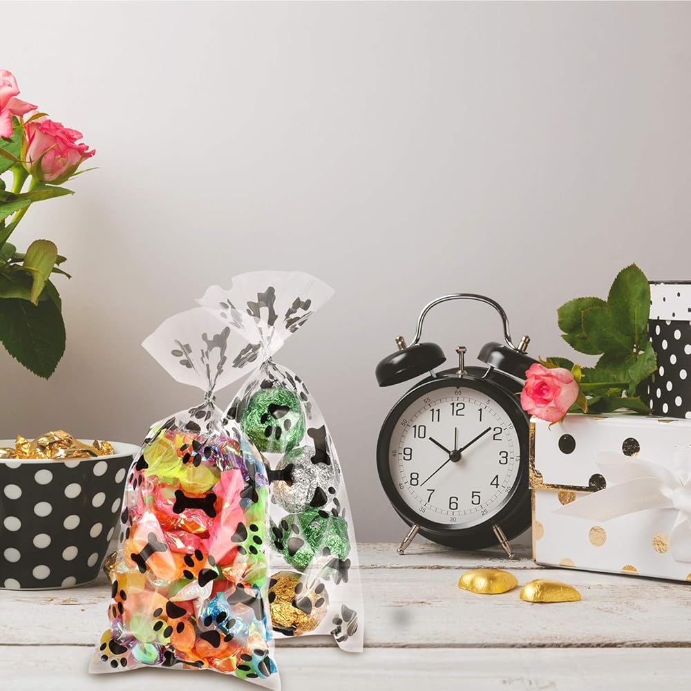 Cute design: these transparent cellophane bags are designed with paw prints and bone patterns, these cute patterns attract the attention of children and adults and will be very popular with children