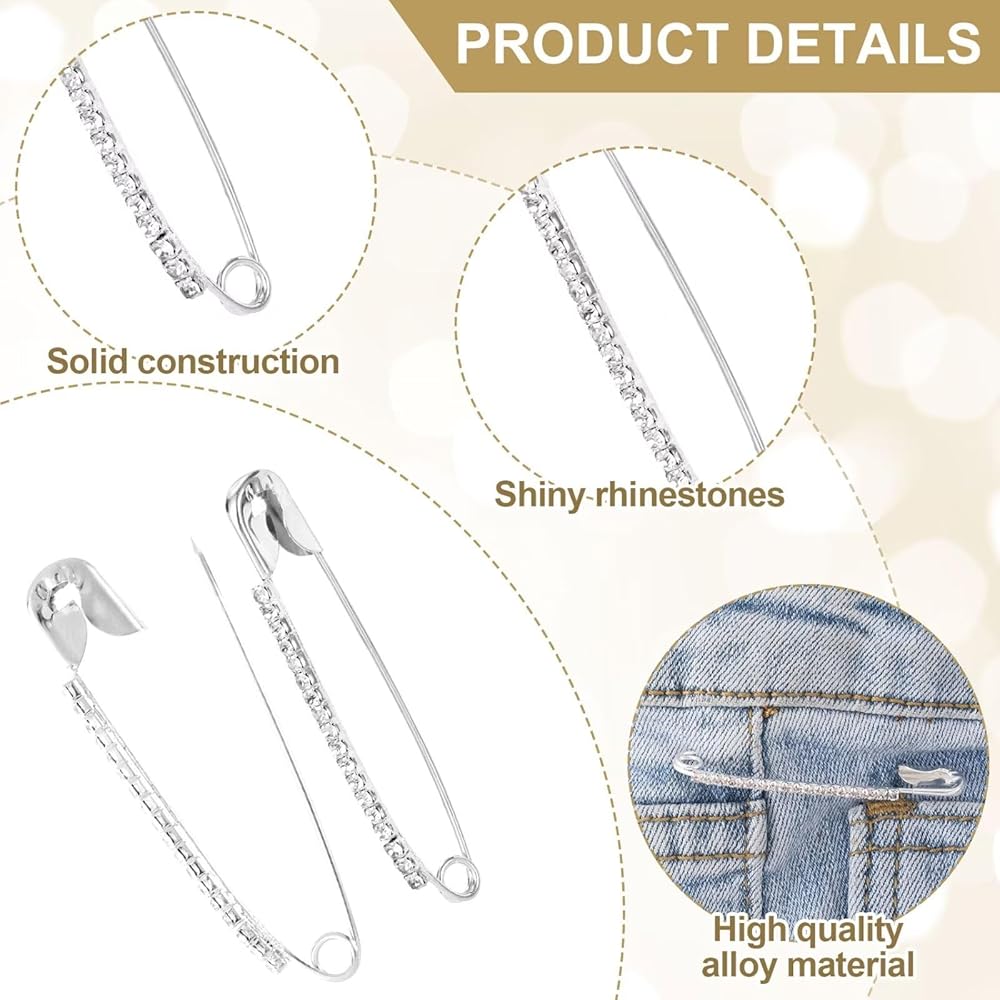 12Pcs silver Rhinestone Safety Pins