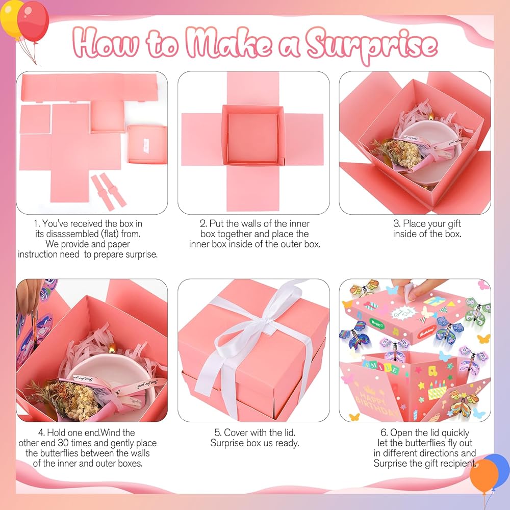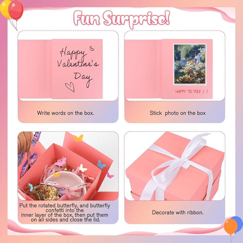 سجل اللحظات الجميلة: تتيح لك صناديق هدايا الانفجار المفاجئة تعزيز مزاج الحفلة. هدية مفاجئة مثالية للأصدقاء والعائلات والأحباء! مناسبة لأعياد الميلاد ، الذكرى السنوية ، عيد الأم. سوف يتم سحبهم بلا شك إلى هذه الهدايا الصغيرة الرائعة.
