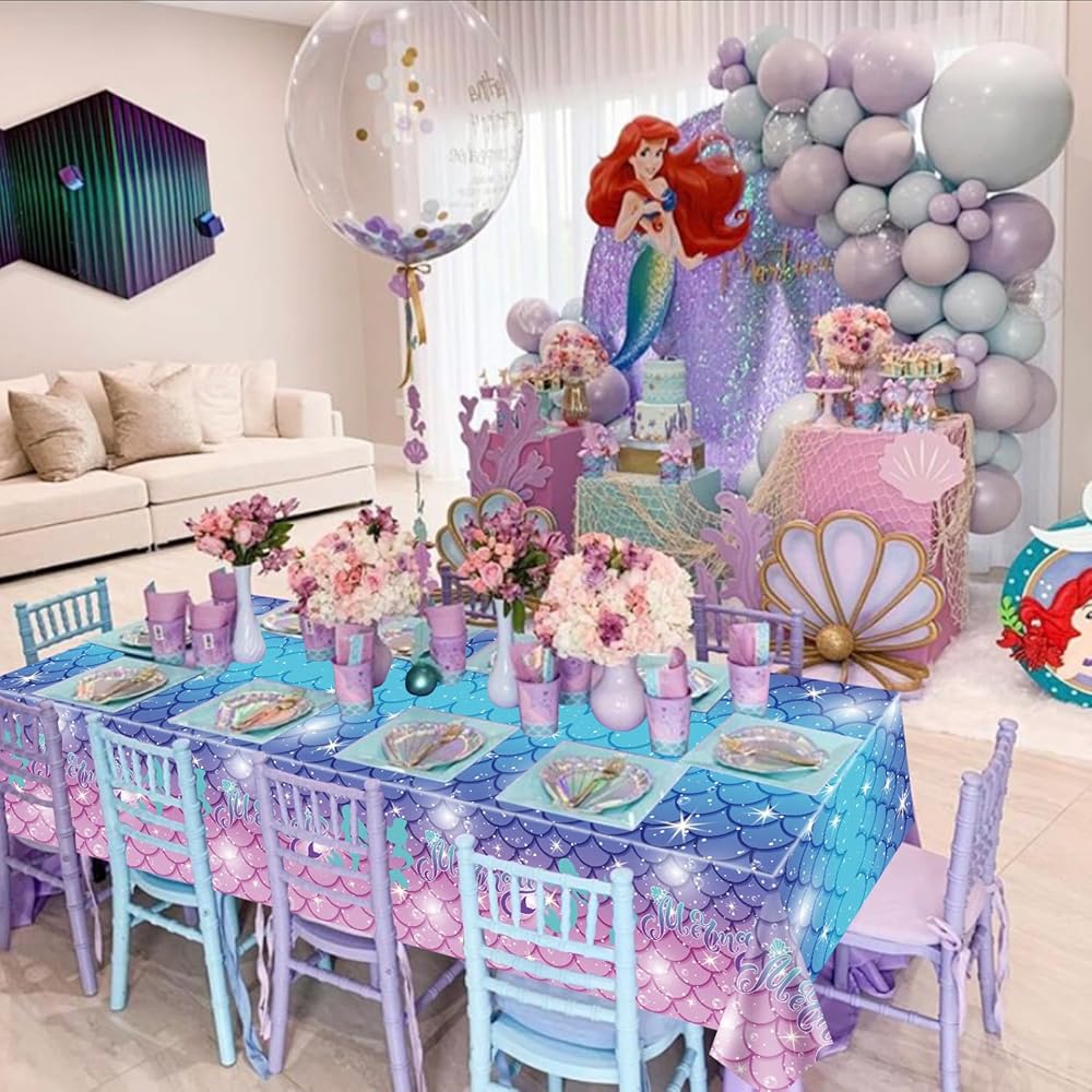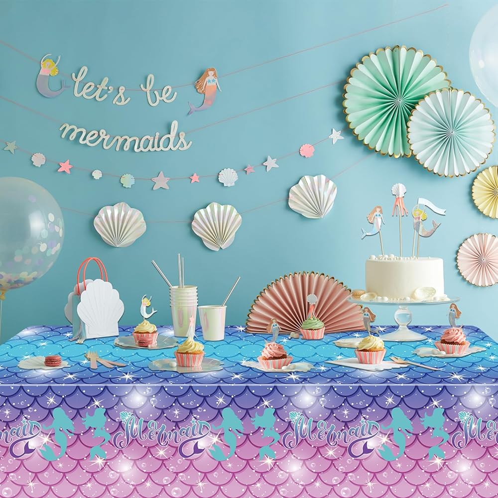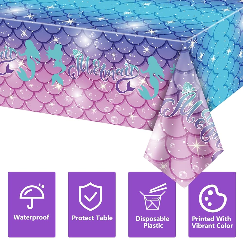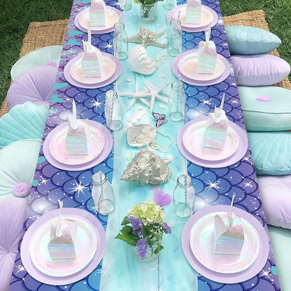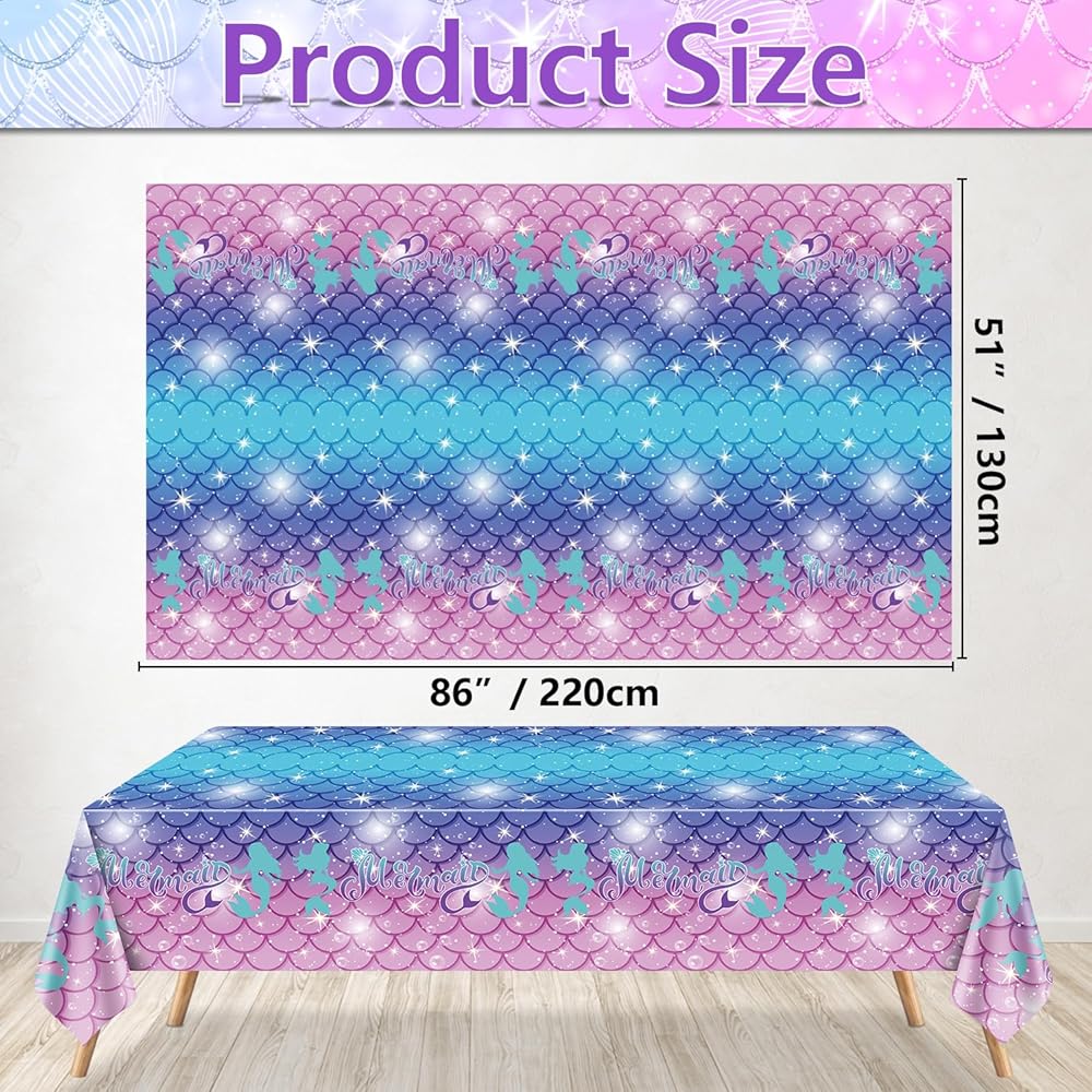 الحزمة والحجم: ستحصل على 4pcs mermaind tableths ، قياس تقريبا. 51 × 86 "/130 × 220 سم ، تعد ملابس طاولة حورية البحر للحفلات كمية كافية لتلبية معظم زخرفة طاولة الحزب.