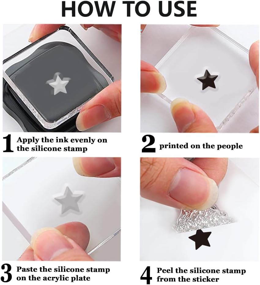 كيفية الاستخدام: ما عليك سوى قشر الختم من ورقة مؤشر البلاستيك والموضع على كتلة الأكريليك (غير مدرجة). يعمل بشكل رائع مع مجموعة متنوعة من الأحبار ، وترك صورًا واضحة وممتعة على أي سطح.