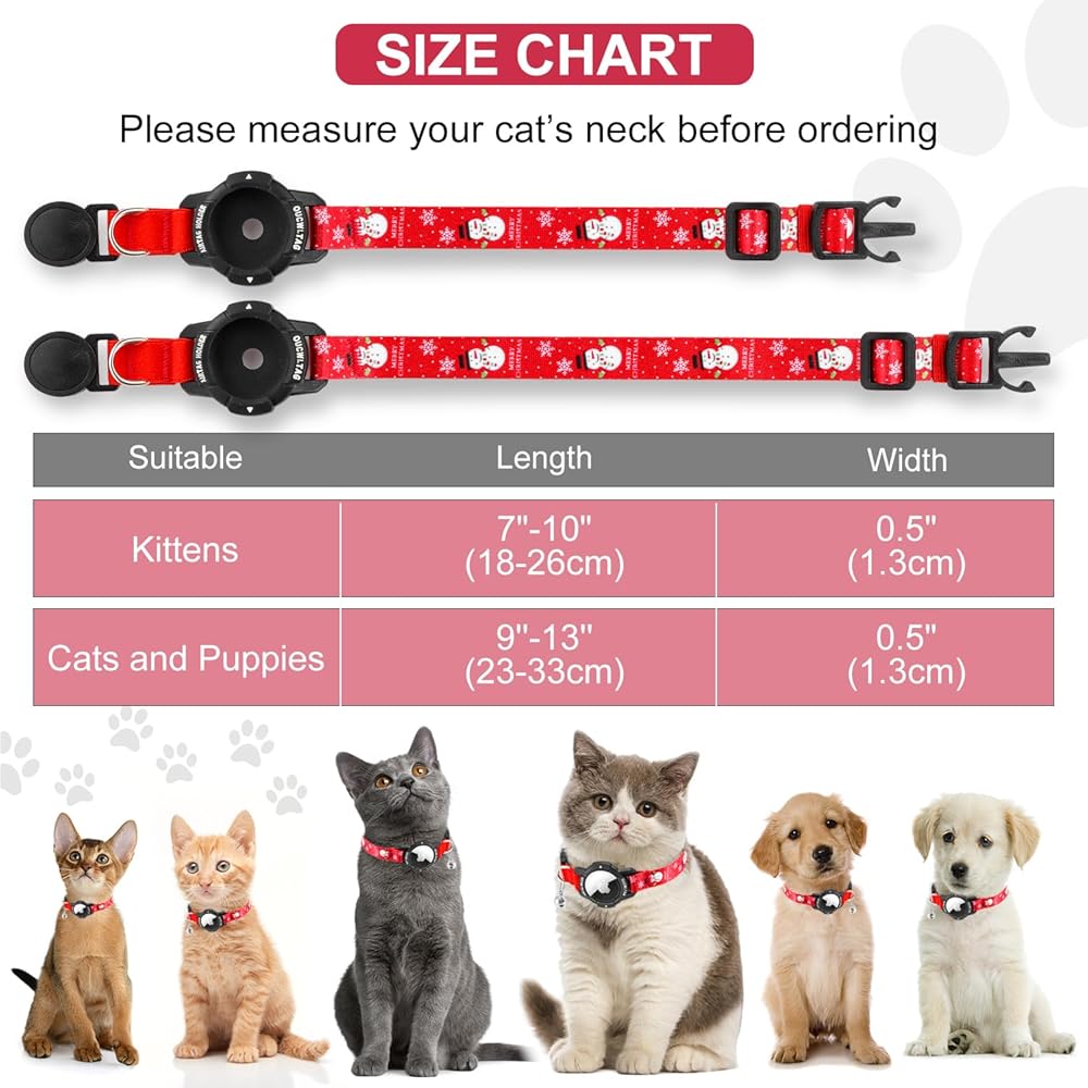 【مصمم لـ Airtag】 مقارنةً بإكسسوارات حامل علامات الهواء المنفصلة الأخرى ، يمكن لـ Airtag Cat Twlar المدمج Aircwatage حماية Airtag. لن يتذبذب أو شنق أو تسقط. طوق القط خفيف الوزن هو مجرد ما تحتاجه لتتبع حيوانك الأليف المحبوب! (لم يتم تضمين الجعة)
