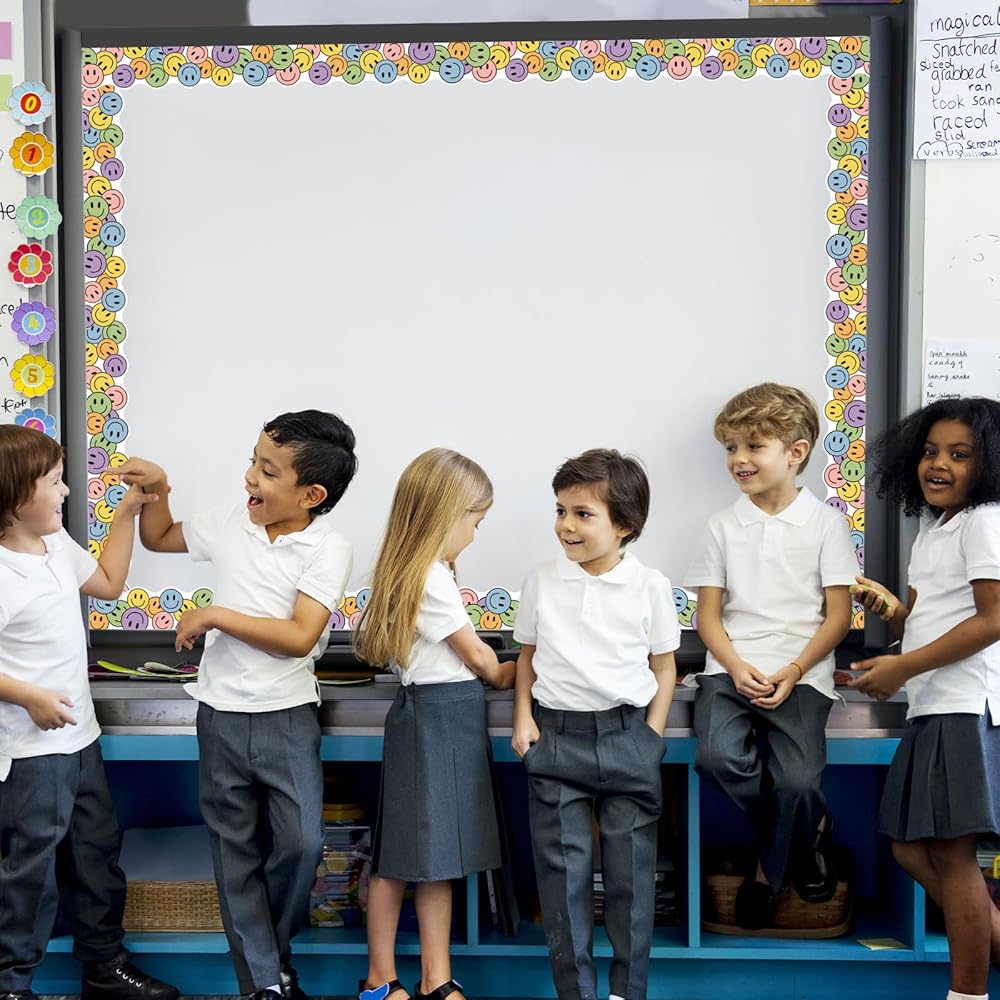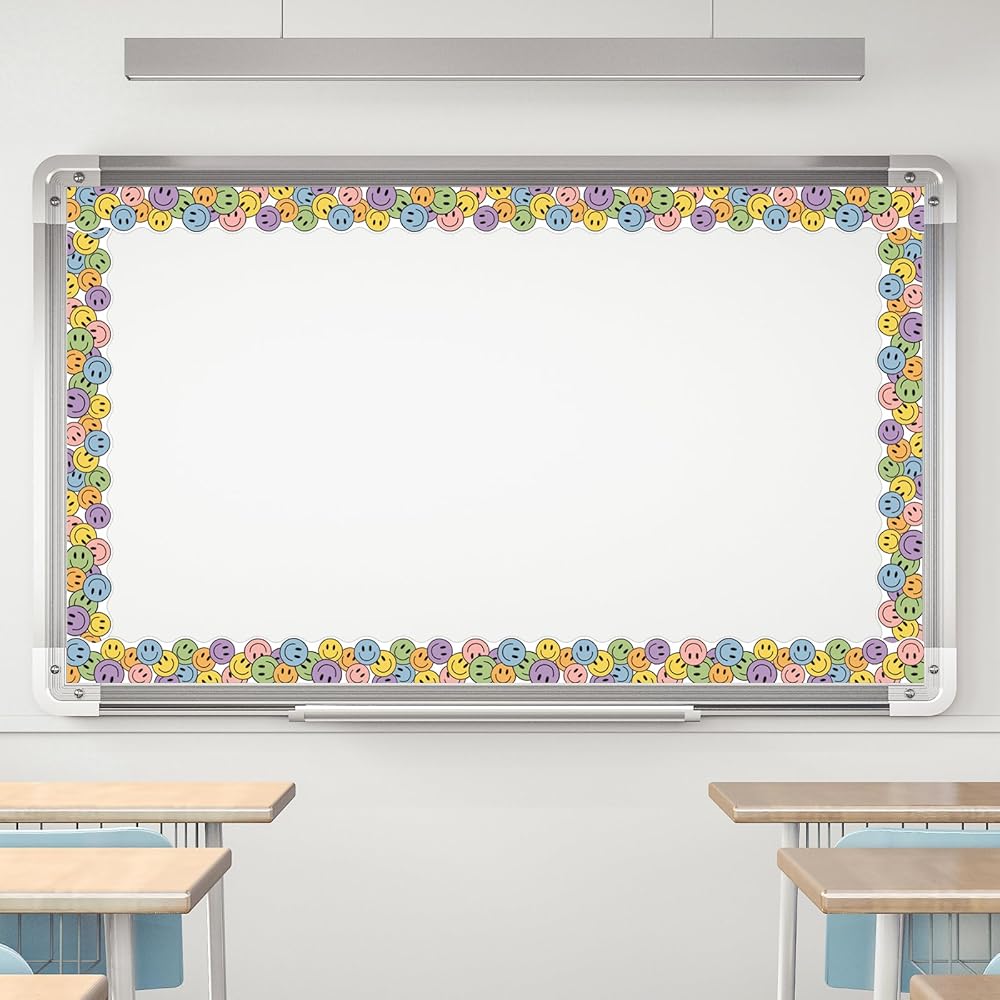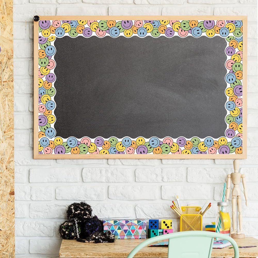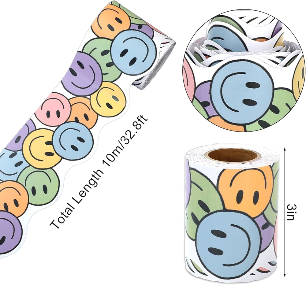 SMILE FACE DESIGN: The bulletin border features smile faces that instantly foster a cheerful atmosphere. Its colorful design adds a playful touch, making learning and working environments more inviting and positive