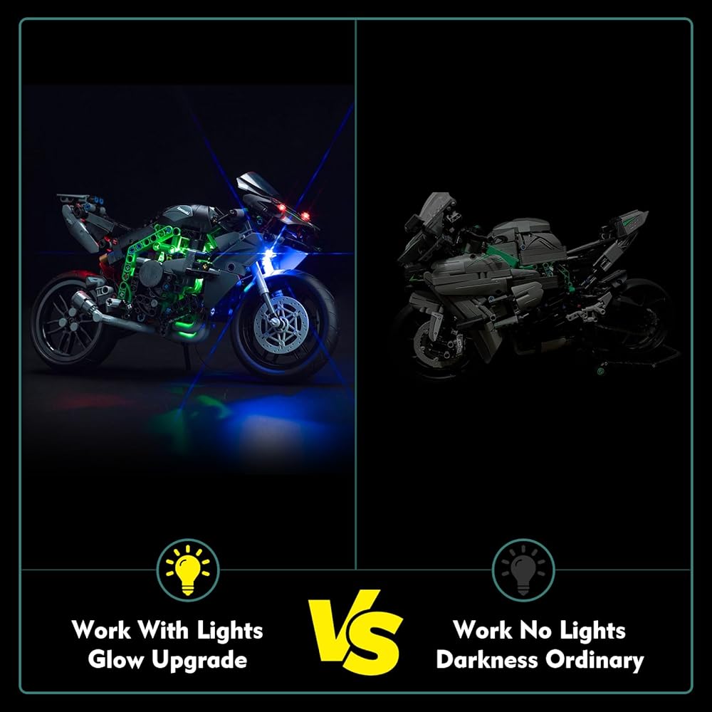 • 【تضيء مجموعة المبنى الخاص بك】 تضيء جميع زوايا النموذج مع الأضواء البصيرة والأضواء المكثفة ، يمكنك رؤية التفاصيل الحية من الداخل والخارج ، متوافقة مع Lego Kawasaki Ninja H2R Motorcycle 42170 Glow في الظلام. ترتيب خاص للهدايا/المجموعات.