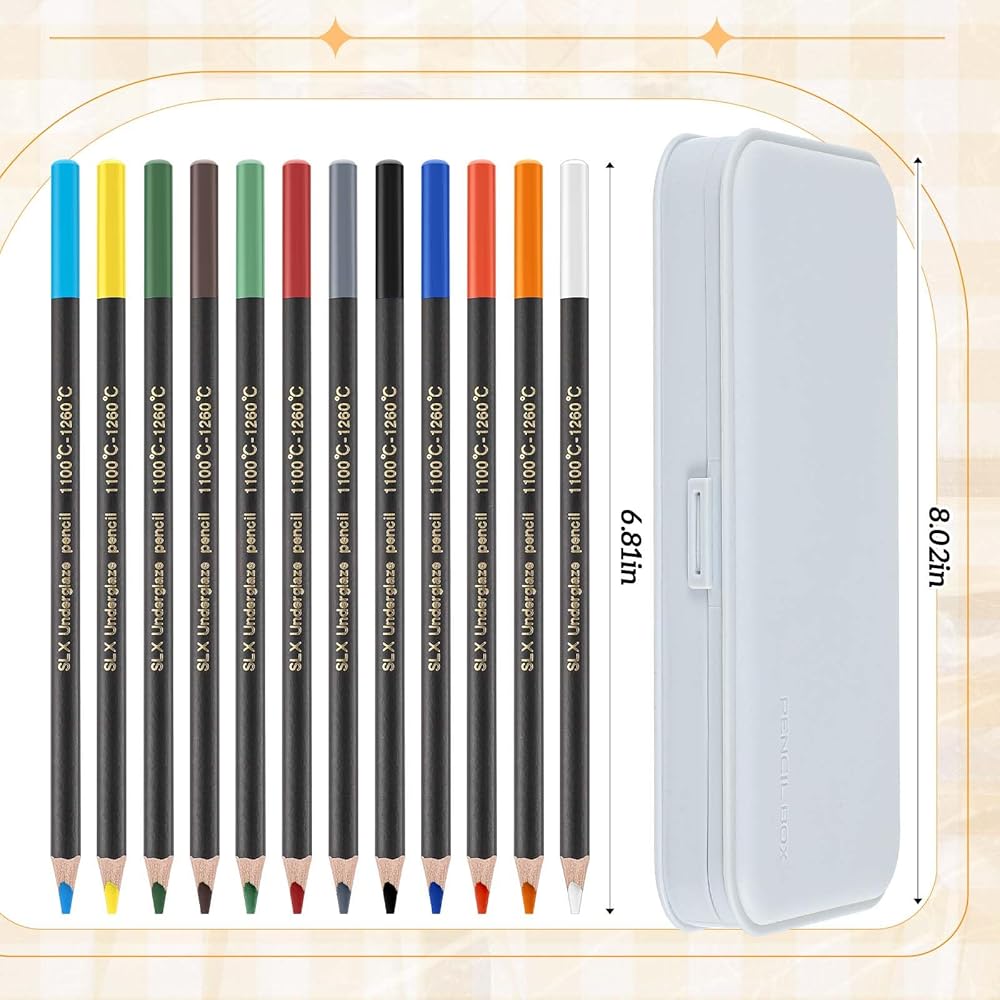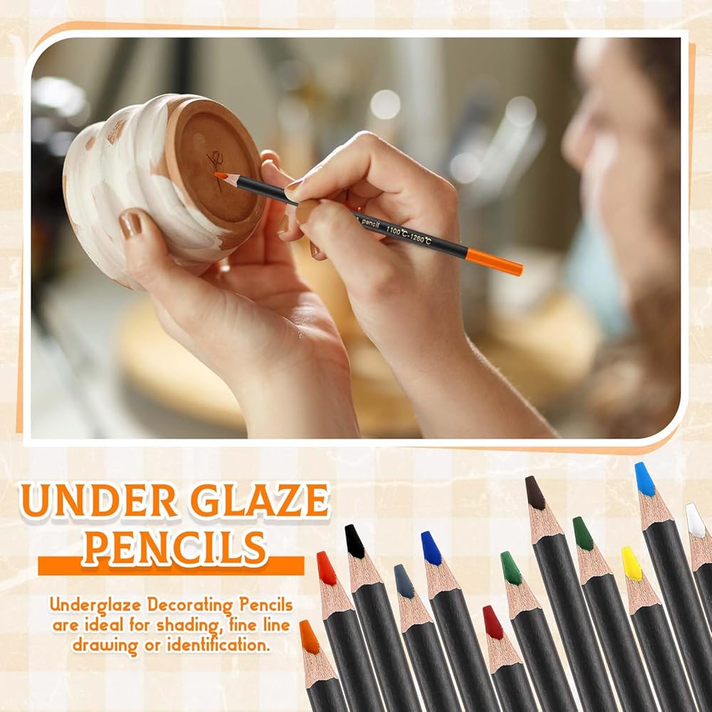 Dunzoom 12 Colors Undergaze Pencils for Ceramics Pottery تشمل قلم القلم القلم القلم القلم المطحبة المراوغة مثالية للزخارف الفنانين الفنانين الخزفيين إنشاء تفاصيل رسم وتظليل