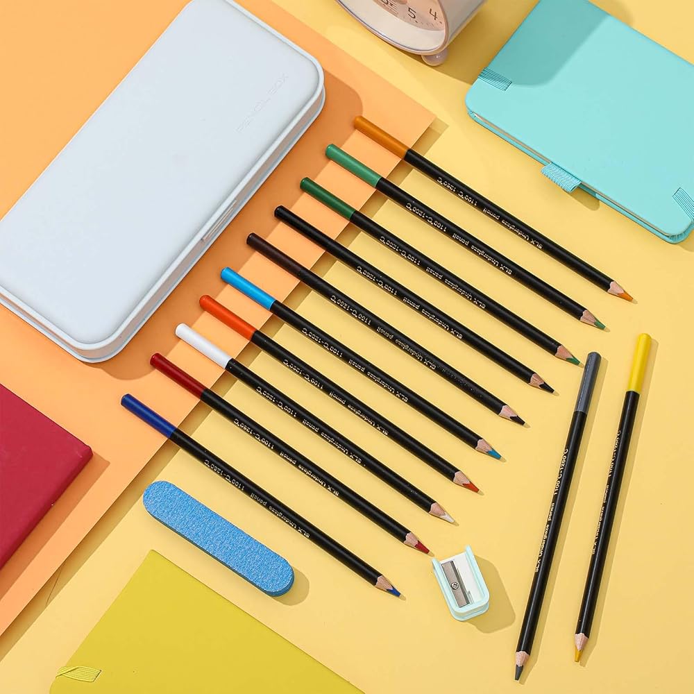 شوائب الحزمة السخية: لا تشمل الحزمة فقط 12 أقلان أقل من أقلام ملونة ، ولكن أيضًا إكسسوارات أخرى مثل علبة قلم رصاص وممحاة ومشرقة قلم رصاص لضمان تجربة رسم مريحة وضمان خطوط حادة وأنيقة