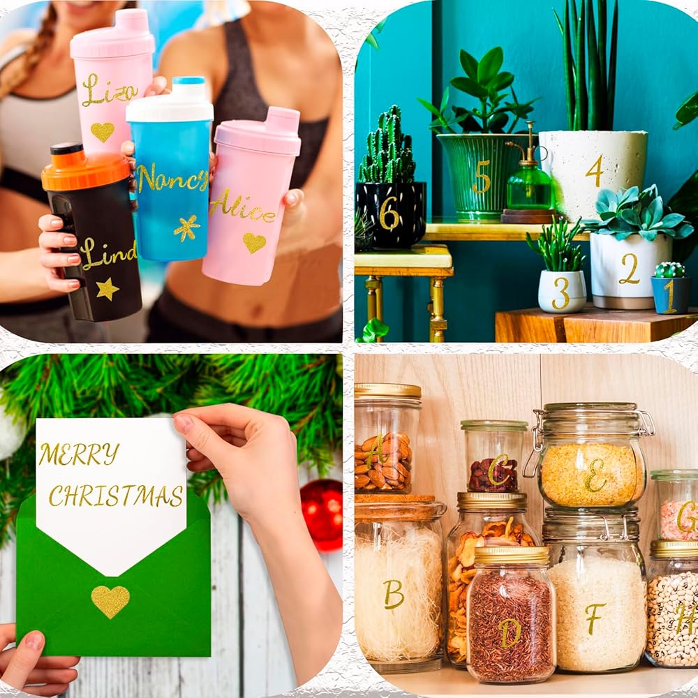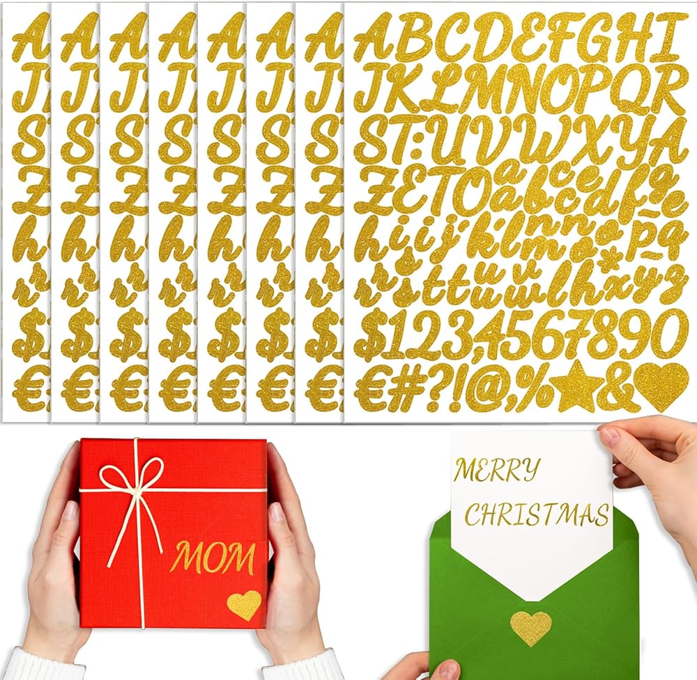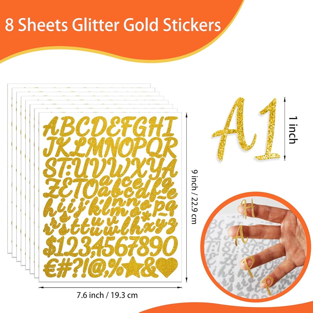 • الكثير من ملصقات الرسائل والأرقام: تتضمن كل مجموعة 8 أوراق من ملصقات رقم الحروف الذهب ذاتية الذهب. تتضمن كل ورقة الأسر والصغيرة من كل حرف ، والأرقام 0-9 ، وبعض الرموز. كمية كافية لتسمية الأشياء! كل حرف / رقم كبير حوالي 1 بوصة / 2.5 سم في الارتفاع. هذه ملصقات الفينيل هذه تقارب تقريبا