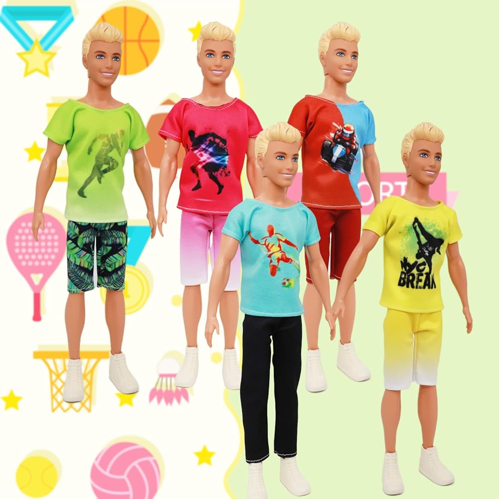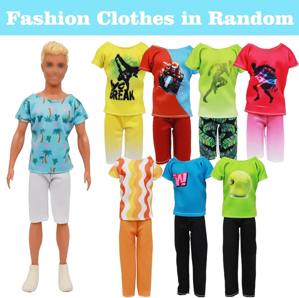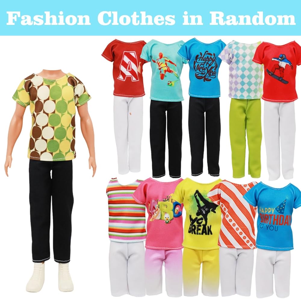 What's in the bag? Random style 10 pcs t-shirt tops + 10 pcs pants for 11.5 inch boy dolls (dolls not included) You get 10 sets of doll clothes.