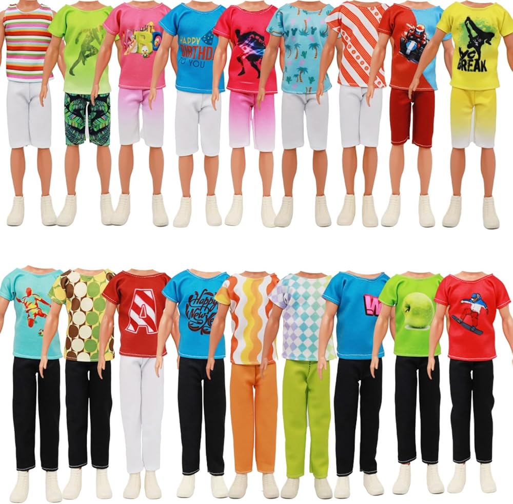 Unleash your child's creativity with this vibrant set of doll clothes! Featuring 10 adorable tops and 10 pants in a delightful array of colors, patterns, and designs, this collection is perfect for mixing and matching outfits. The soft, stretchy fabric ensures a comfortable fit for 11.5-inch boy dolls (dolls not included), while the sticky backing makes dressing and undressing a breeze for little hands. From playful graphics to bold stripes, each piece is a canvas for imaginative play. Encourage your little one's sense of style and storytelling with this versatile wardrobe. Handcrafted with care, these durable garments are sure to withstand endless adventures. Spark endless joy and let your child's fashion dreams come to life!