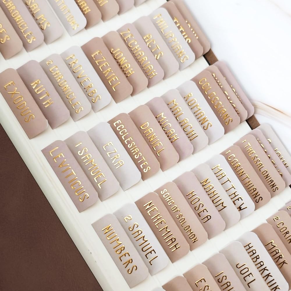 حروف منقوشة رقائق ذهبية أنيقة: اجعل الكتاب المقدس يبدو جميلًا مع علامات تبويب الصفحة المقفرة بالذهب. يجعل خط All-Caps علامات تبويب الكتاب المقدس لامعة وموحدة ، مما يضيف لمسة من التطور إلى قراءتك اليومية.