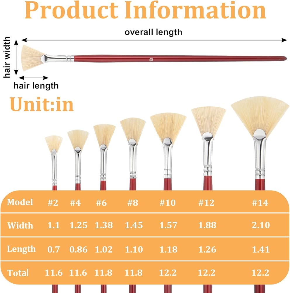 Packing List: You will receive 7 pcs fan brush, 7 fan brush sets are different sizes (2#, 4#, 6#, 8#, 10#, 12#, 14#), sufficient quantity, various sizes, meet your daily use needs, and can also be given as gifts to family and friends around you