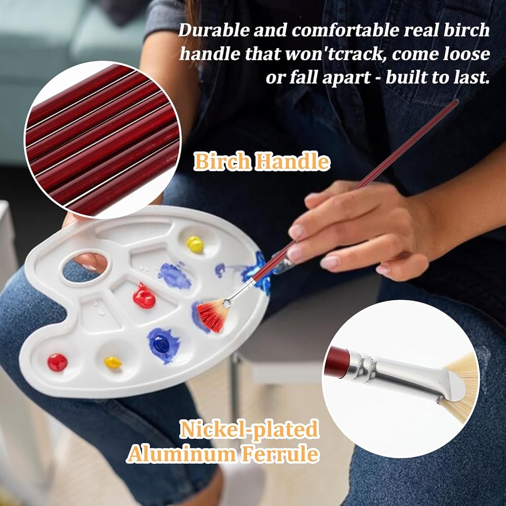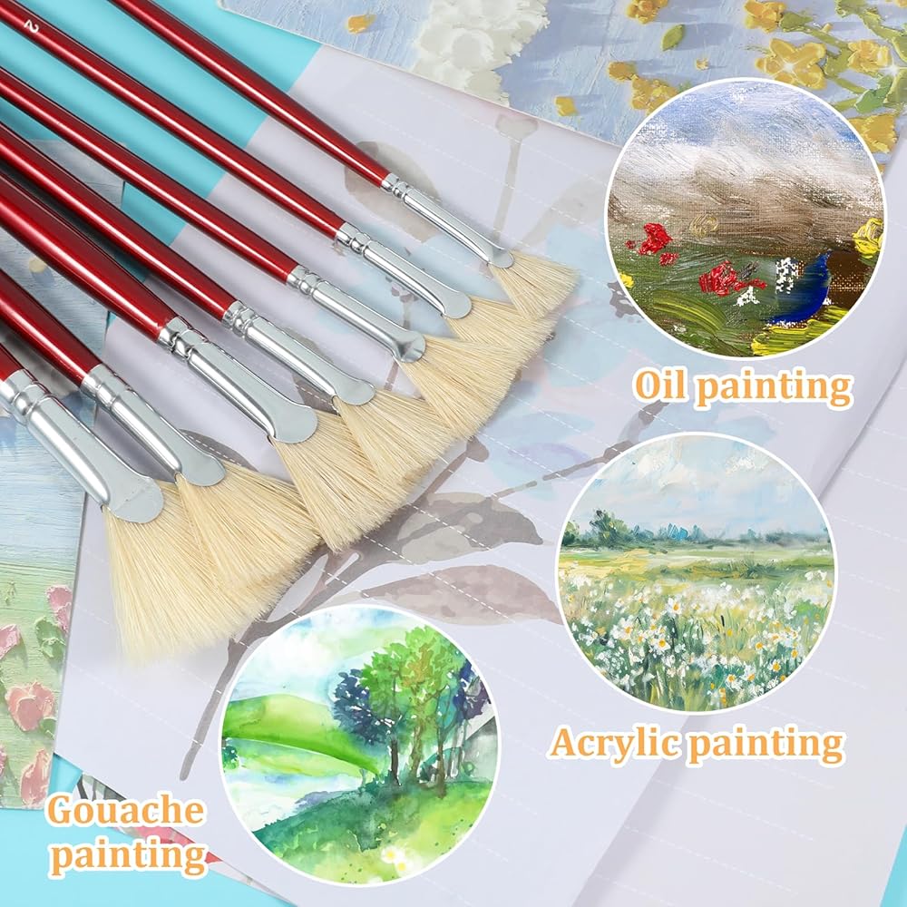 Wide Application: Not only a great fan brush for acrylic painting, large scale oil/gouache/acrylic painting, but also suitable for detail depiction, special effects makeup, craft art painting, rock painting, hobby DIY art projects, etc