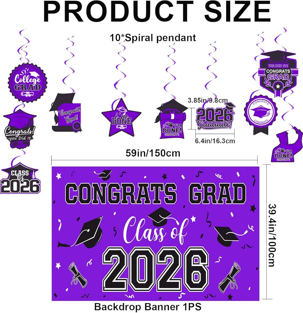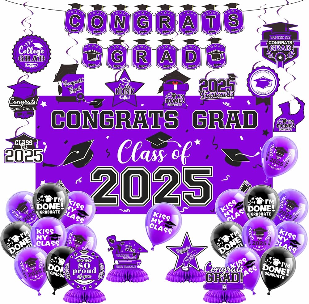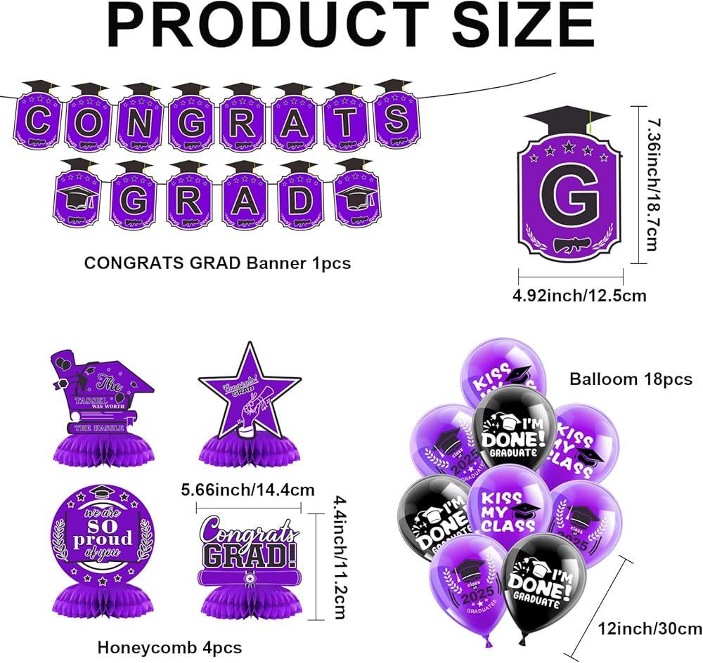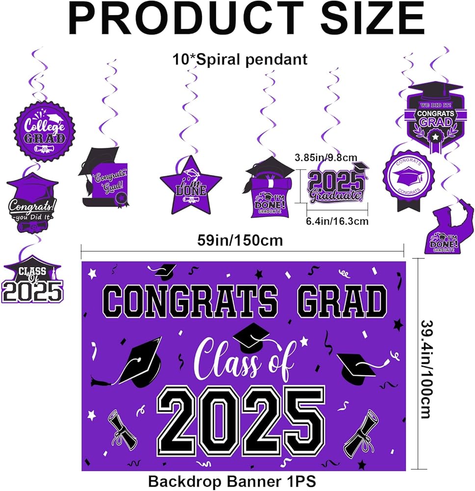 【2025 ديكورات التخرج】 ستتلقى 34 زينة للحفلات ، بما في ذلك 1PCs "تهانينا غراد" ، 1PCS فئة من 2025 خلفية ، 10pcs التدرج معالجة دوامة تهانينا ، 4pcs toppers topers topers toper و 18pcs.