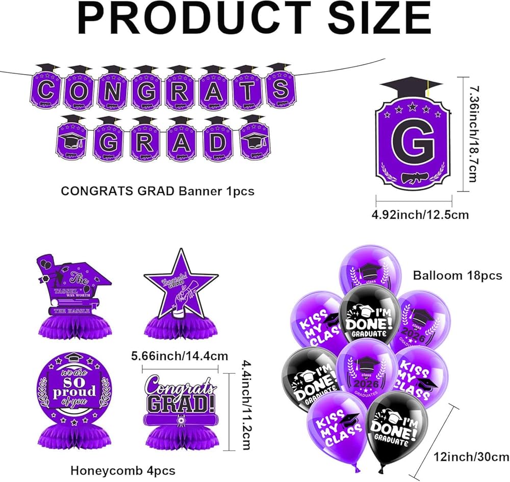 【مواد عالية الجودة】 مصنوعة من زخارف حفل التخرج لعام 2025 من مواد متميزة ، مع التصفيح السطحي وتكنولوجيا الطباعة الواضحة ، والتي ليس من السهل الانحناء. زخارف التخرج هذه قوية ، غير سامة ، ولا رائحة. سيبقون نابضًا بالحياة وبحالة رائعة طوال احتفالك ، مع الحفاظ على ممتعة للحفلات والاحتفال من البداية إلى النهاية.