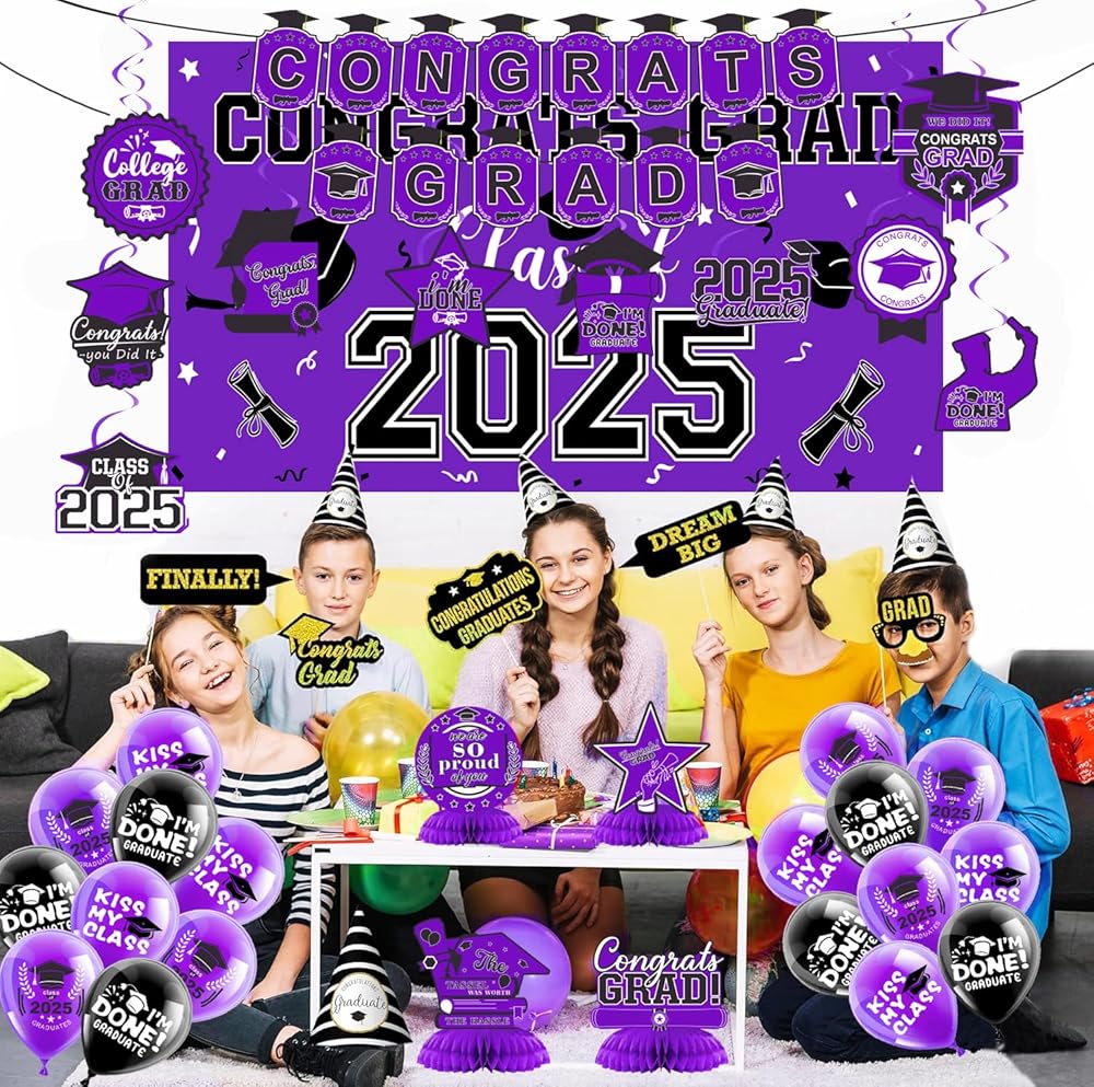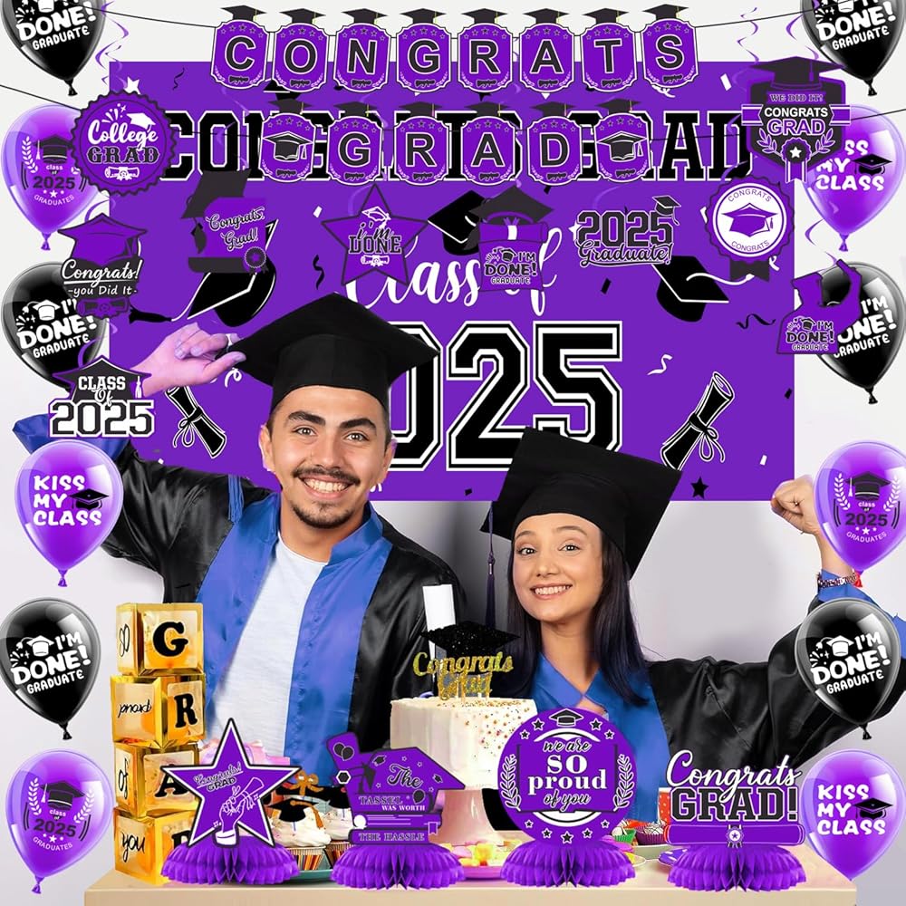 【من السهل استخدام】 The Congrats Grad Banners و 2025 تخرج ، مما يجعل تزيين نسيم. اقض المزيد من الوقت في الاحتفال بتخرجك مع العائلة والأصدقاء وزملاء الدراسة.