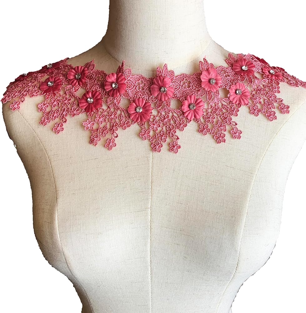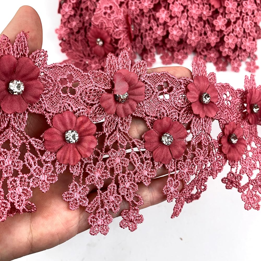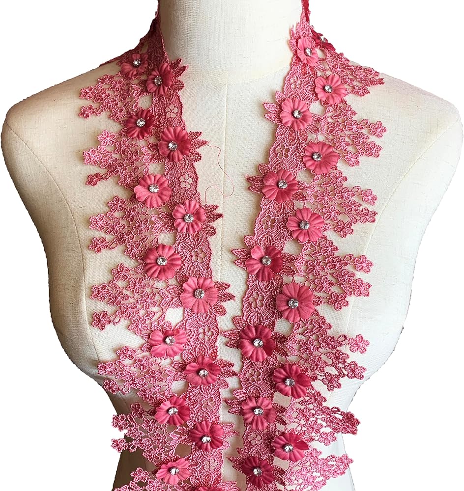 Exquisite Design: This lace edge trim features an intricate design with delicate rhinestone beads and beautifully embroidered flower patterns, adding an elegant and luxurious touch to any project.