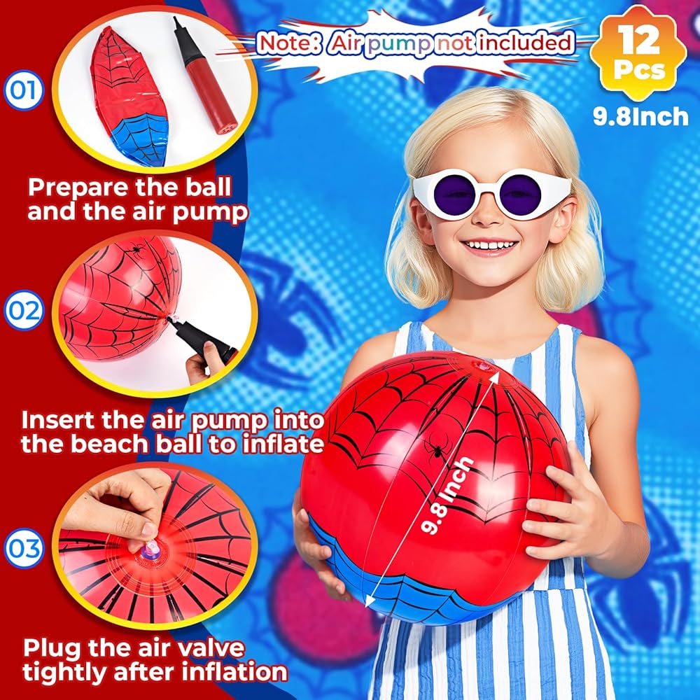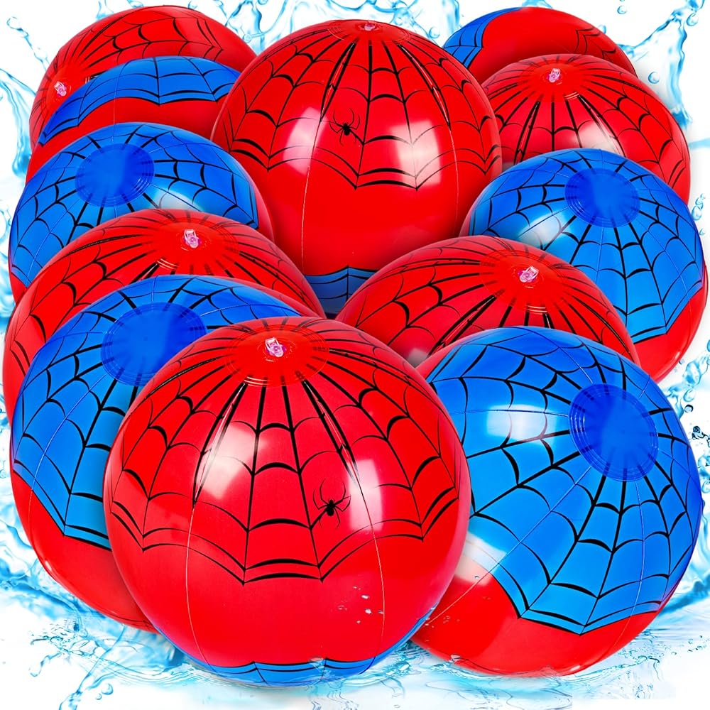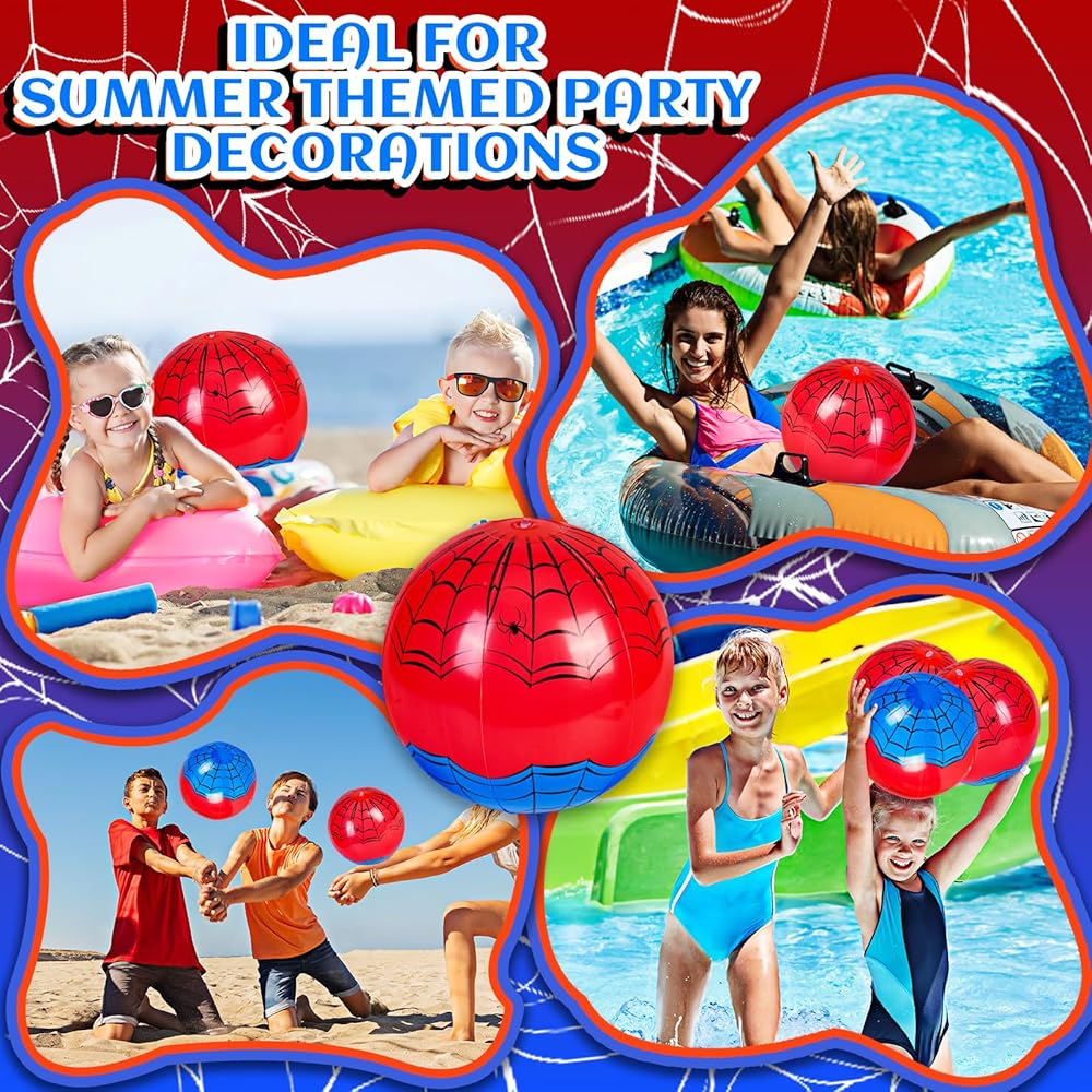 12 حزمة العنكبوت الكرة السماوية Beach Ball - 9.84 "كرات الشاطئ القابلة للنفخ السائبة لألعاب حمام السباحة ألعاب المياه الصيفية والأزرق الأزرق والأحمر على شبكة الإنترنت تفضل الإمدادات ، تحت حفل البحر ديكو
