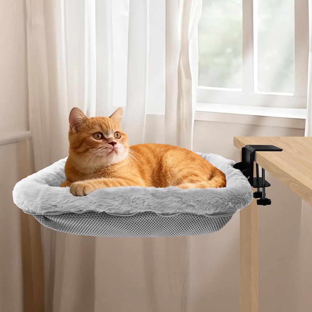 Lilyang Cat Desk Bed-Cat Hammock لتوفير مساحة المكاتب المنزلية ، سرير آمن مع إطار من الحجم الفائق والفولاذ ، يدعم ما يصل إلى 40 رطلاً وغطاءًا قابلاً للانعكاس