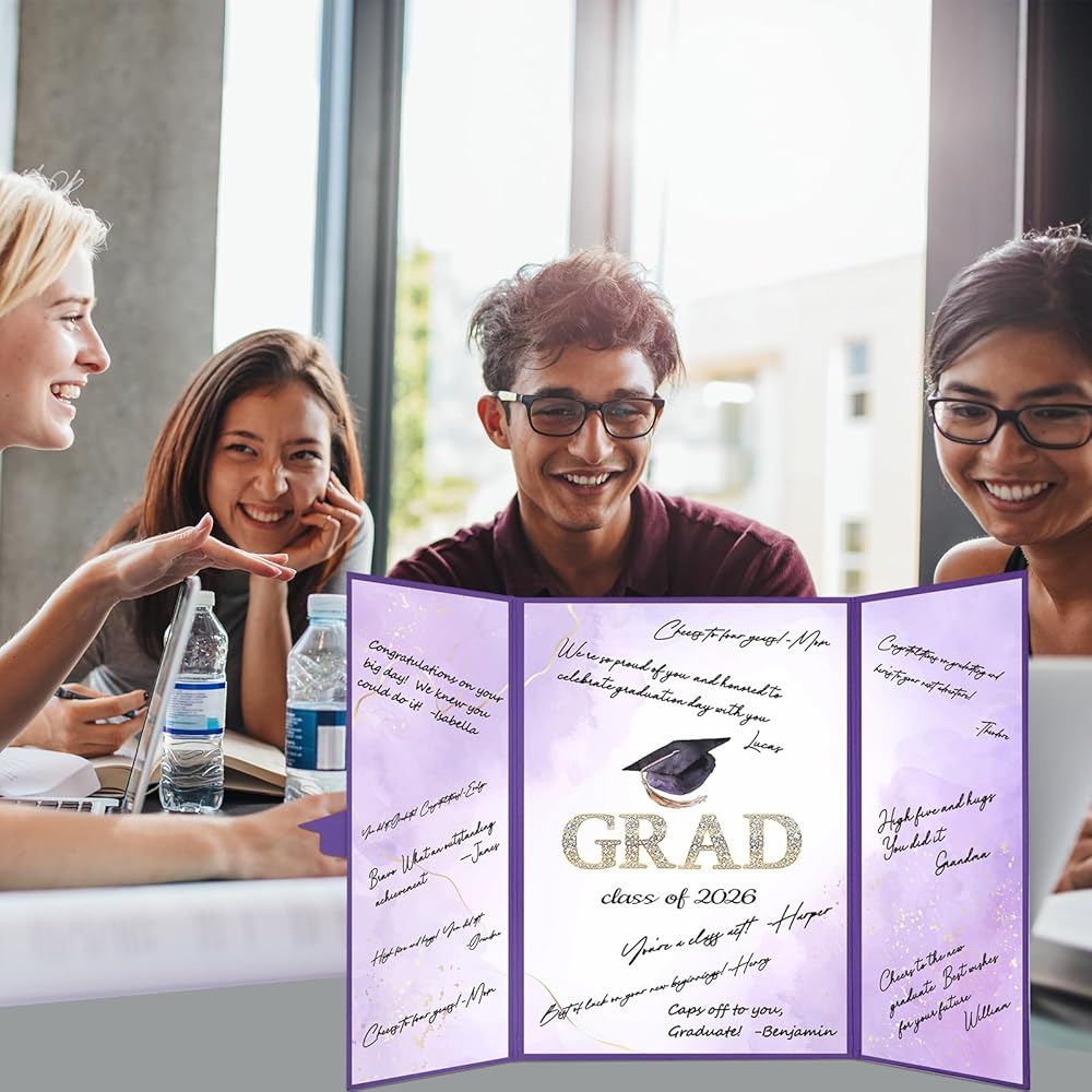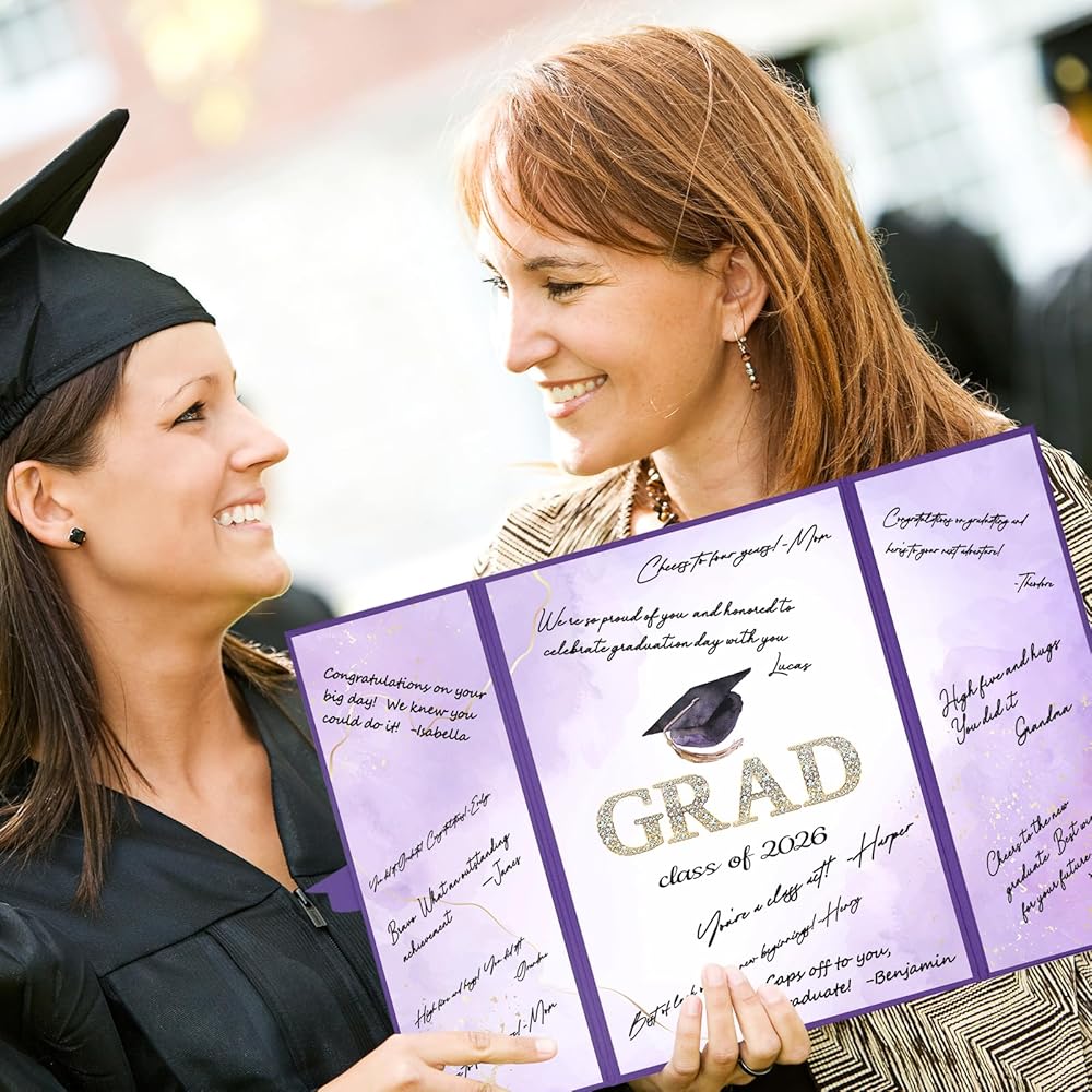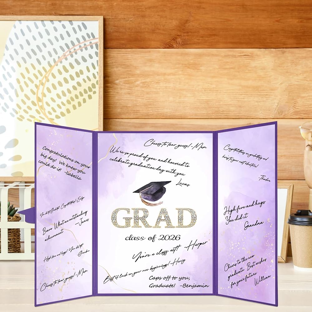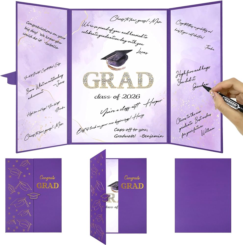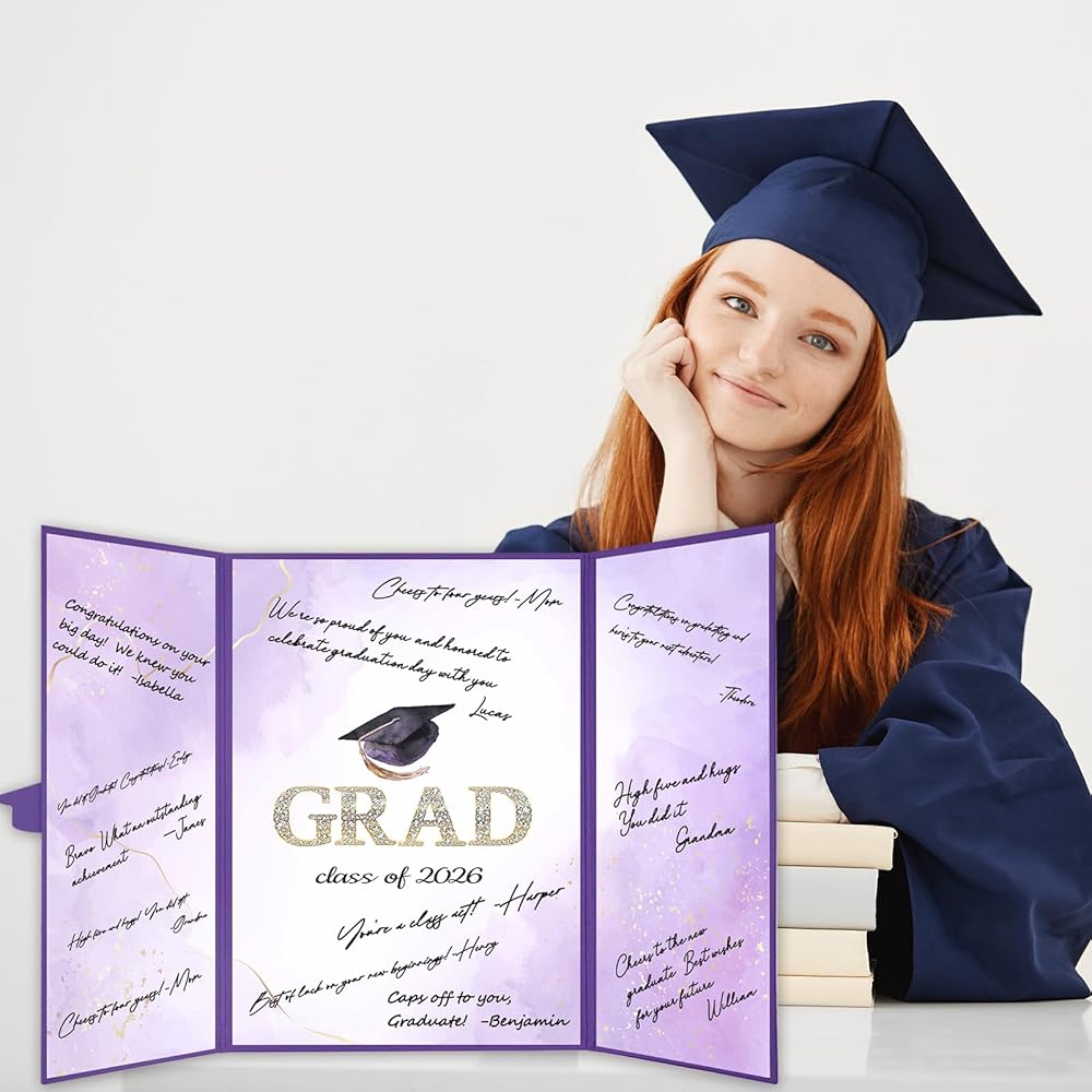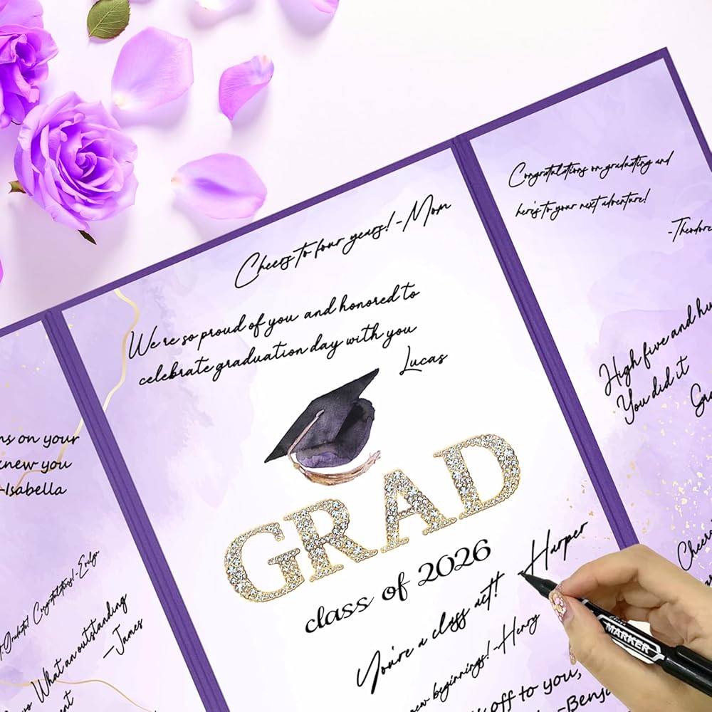 Trgowaul 2026 ديكورات حفلات التخرج، فئة أرجوانية من 2026 بديل كتاب الضيوف، لوحة شهادة توقيع Congrats Grad، ملصق تسجيل الدخول Congrats Grad، لوازم حفلات التخرج هدايا مفضلة