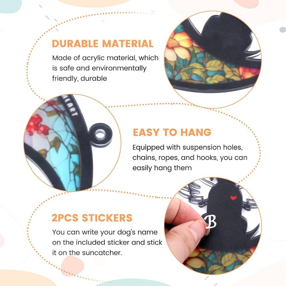 【FOR PET MEMORIAL】Lovely pets are our family members. People who love pets can understand the sadness of losing a pet. This suncatcher can be used to commemorate the lost pet and keep it in our hearts forever. You can write your dog's name or message on the included sticker and stick it on the suncatcher.