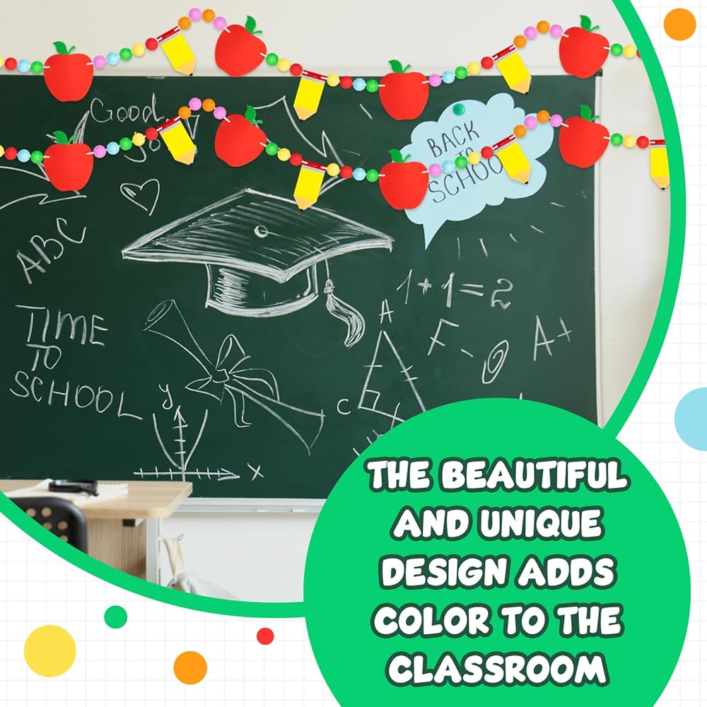 These back to school garlands are designed with colorful balls and pencils, eye-catching and beautiful, easy to attract party guests and create a strong festive atmosphere.