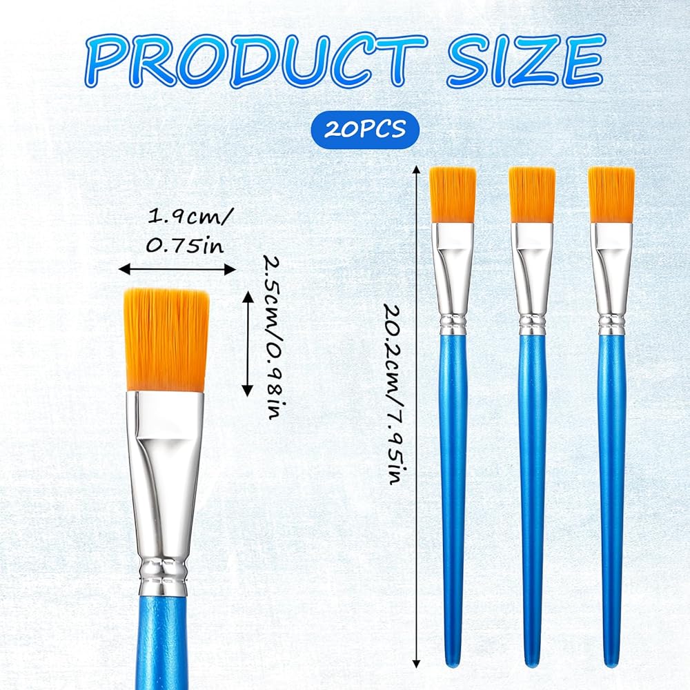 Abundant Quantity and Suitable Size: The package contains 20pcs high-quality flat paint brushes for acrylic painting. Each paint brush is approximately 20.5 cm (8.07 inches) in length with flat bristles measuring 1.9 cm (0.75 inch) in width and 2.2 cm (0.87 inch) in length