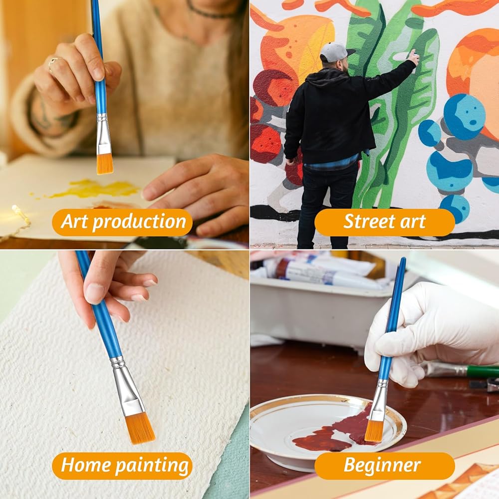 Versatile Usage: Perfect for a variety of paint mediums including acrylic, watercolor, oil, gouache, tempera, ink, and enamel. The flat art paint brushes design meets the diverse needs of all painter levels from beginners to professional artists