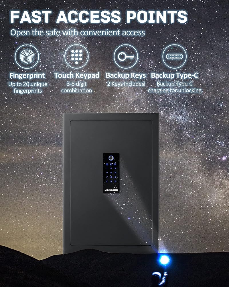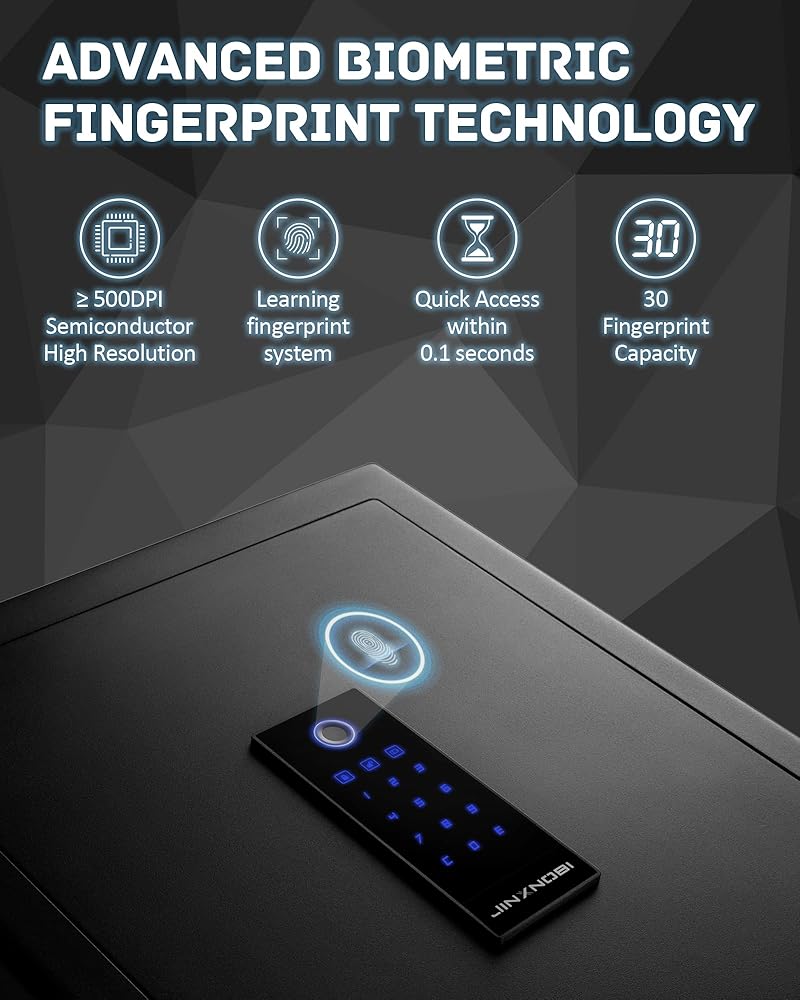 [الوصول إلى بصمة البصمات الحيوية الذكية] لوحة اللمس الذكية مع نظام التعرف على القياس الحيوي المتقدم لا يحتاج إلا إلى الوصول إلى بصمة واحدة. يعد النسخ الاحتياطي للبطارية من النوع C مريحًا لشحن الطاقة عند استخدام البطارية المدمجة ، ثم يسهل استخدامه لمسة إصبعك وتمرير الرموز لإلغاء قفل المربع الآمن.