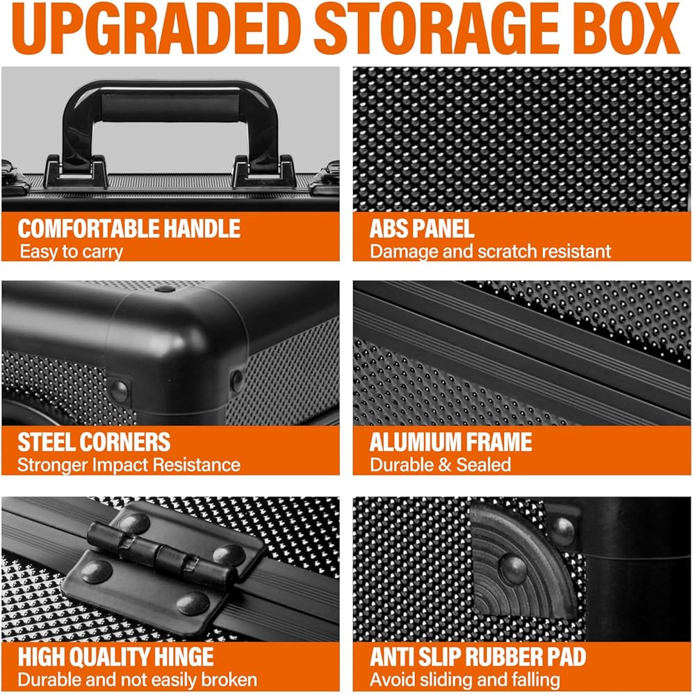 To further enhance security, the storage boxes are equipped with a lock, allowing you to use your own combination lock to add an extra layer of protection. This ensures that your valuable collection is safe from unauthorized access, giving you peace of mind whether you're storing them at home or on the go.