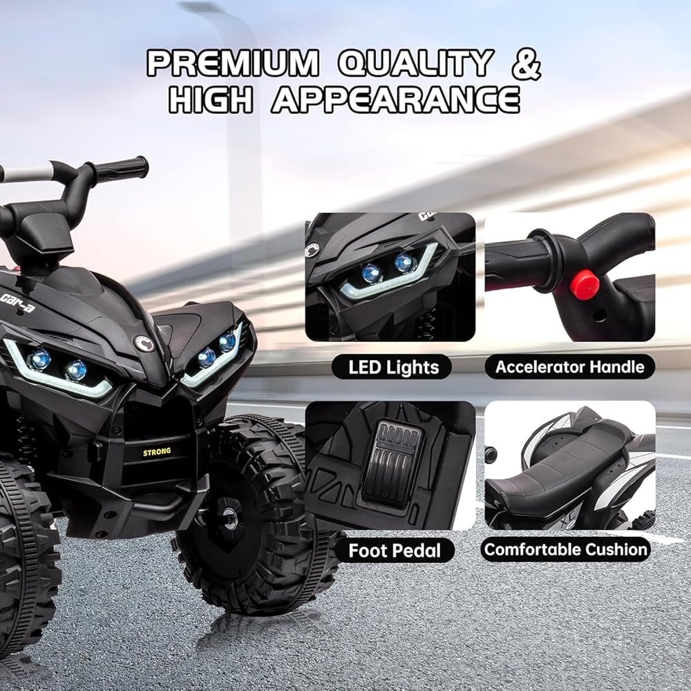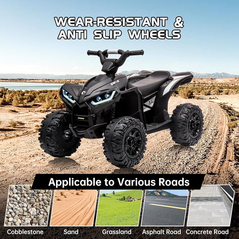 12V Kids Ride On Atv ,Battery Powered Electric Four Wheeler With Music, Led Lights, High/Low Speed Modes, Usb Port, Treaded Tires, Remote Control, and 3 Speeds for Boys and Girls