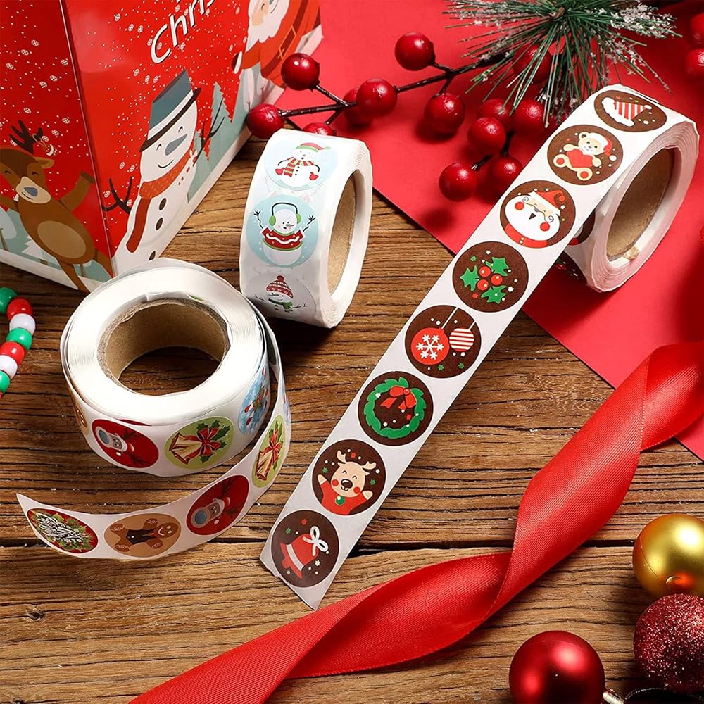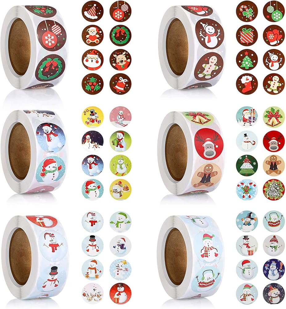 6 رولز 3000 قطعة ملصقات عيد الميلاد ملصقات ملصقات مستديرة - ملصقات زخرفية من عيد الميلاد لفة 1 بوصة 48 تصاميم للبطاقات مربعات الأظرف