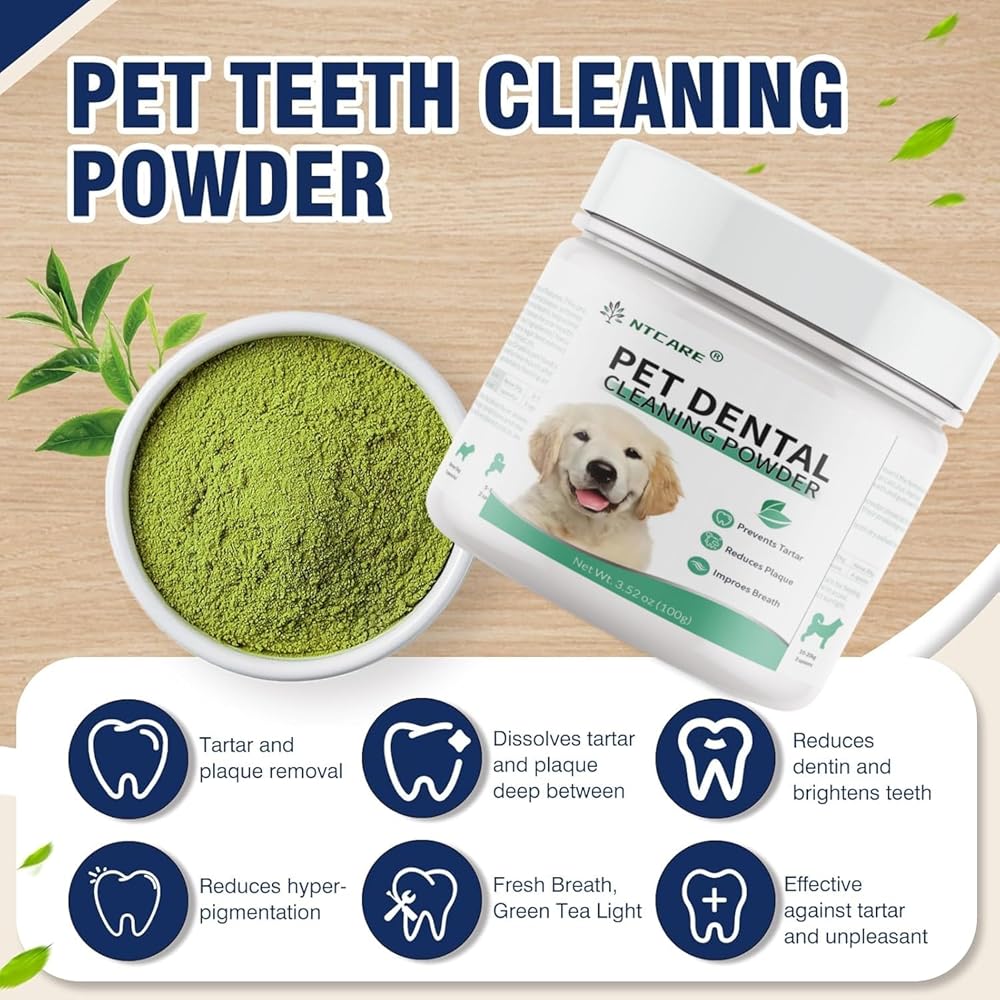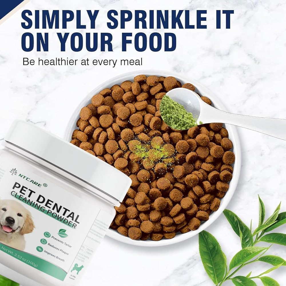 - الصيغة الطبيعية: مسحوق تنظيف الأسنان القائم على الشاي الأخضر مصمم خصيصًا للكلاب والقطط لتعزيز النظافة عن طريق الفم