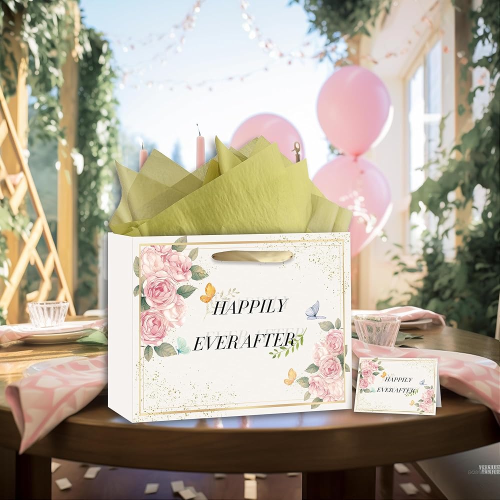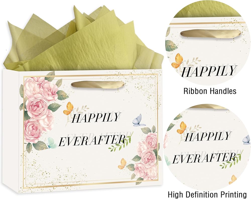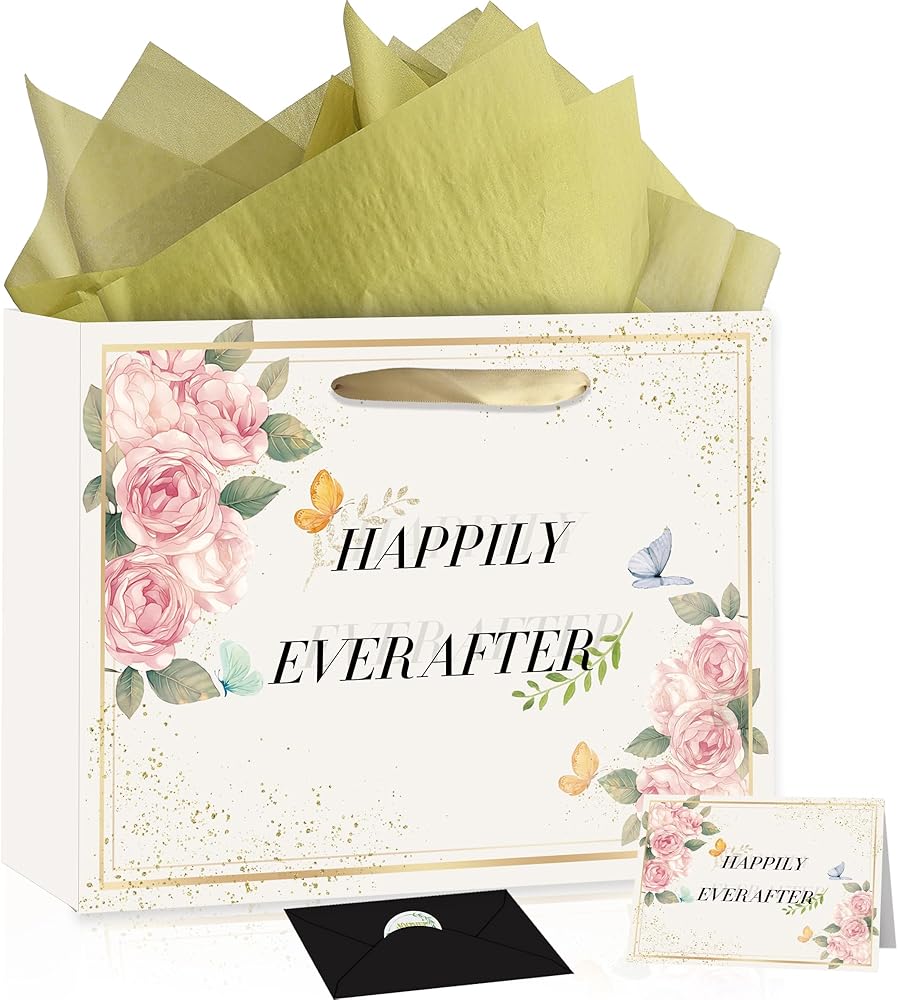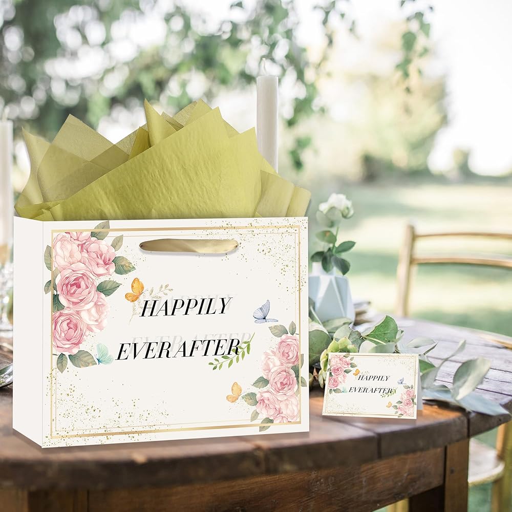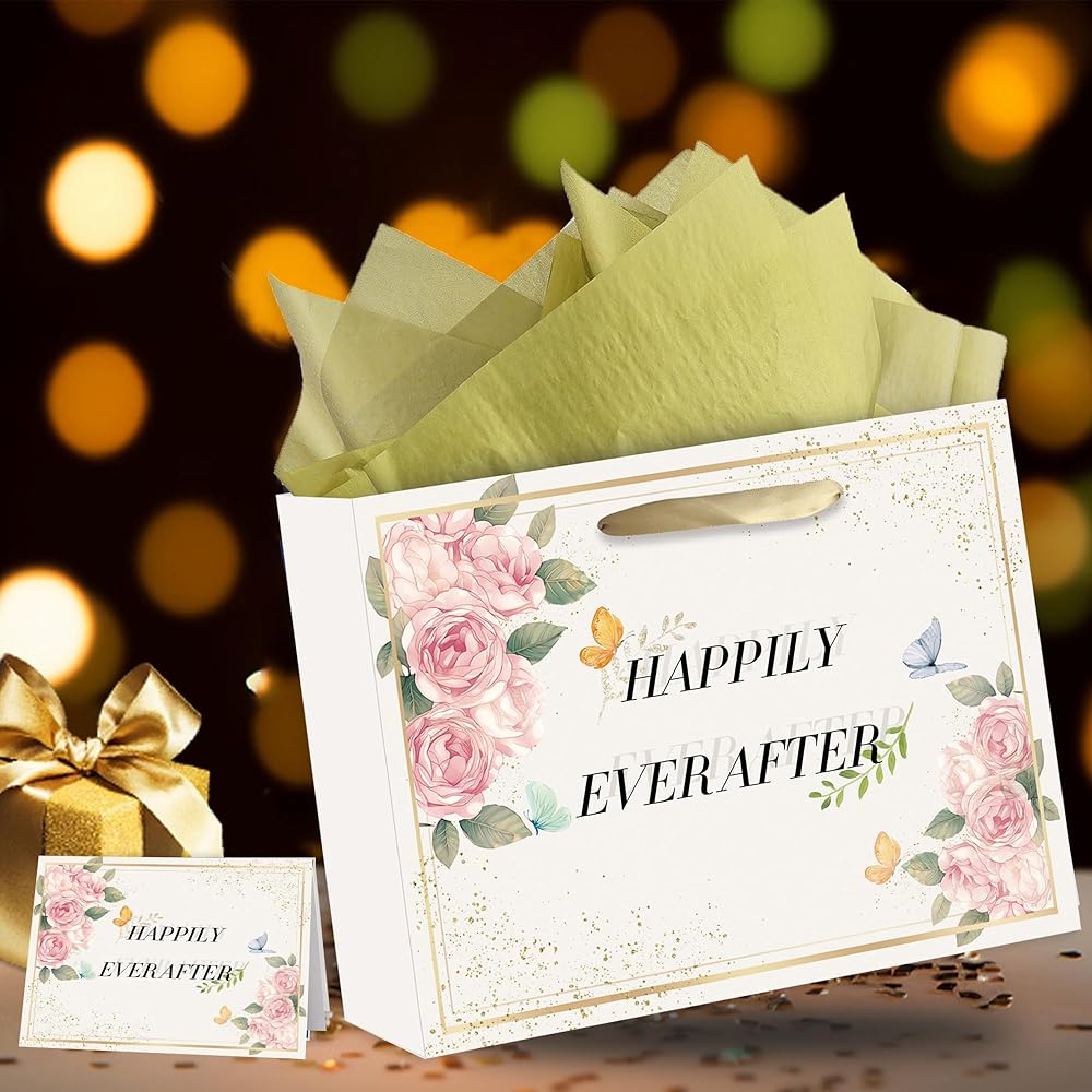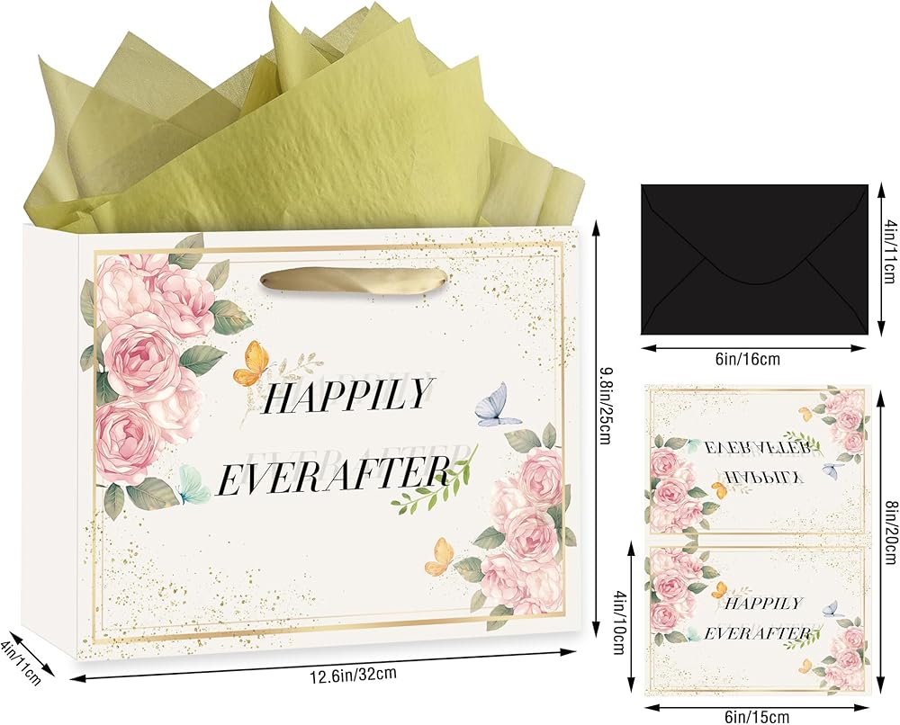 🌸【 حقيبة هدايا الزفاف】 مجموعة هدايا دش الزفاف تتضمن حقيبة زفاف كبيرة 1 مساءً ، بطاقة دش الزفاف 1pc ، ورق الأنسجة الذهبية 2pc ، مظروف 1pc وملصق 1pc. إنه مثالي لورقة تغليف هدايا الزفاف ، حقيبة هدايا دش الزفاف أو ورقة تغليف المشاركة.