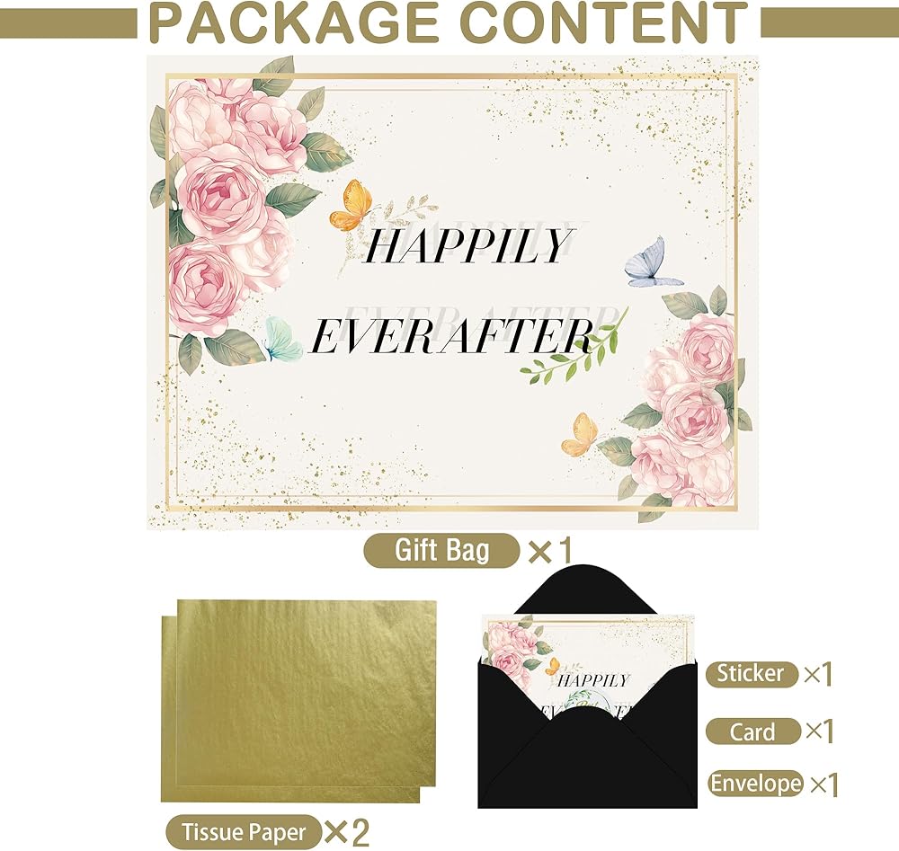 🌸【 تصميم فريد】 ورقة تغليف دش الزفاف وبطاقة الترحيب لها عبارة "بسعادة دائمة بعد" وحدود الزهور الوردية. يمكنك أيضًا كتابة رغباتك على بطاقة الزفاف ، ووضعها في مظروف ، وختم الظرف بالملصقات. اجعل هدايا زفافك فريدة من نوعها.
