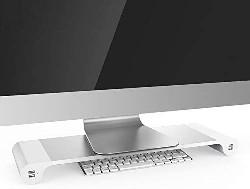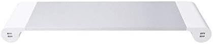 حامل شاشة سطح المكتب من سبائك الألومنيوم وشريط مساحة وحامل كمبيوتر محمول غير قابل للانزلاق مع 4 منافذ شحن USB لأجهزة iMac وMacBook Pro وAir (قابس أبيض بالمملكة المتحدة)