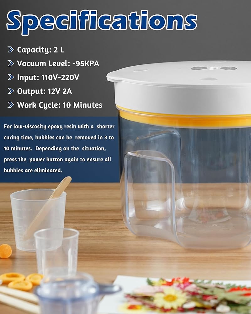 2L مزيل راتنجات الإيبوكسي السريع وماكينة Degasser - إزالة 10 دقائق بدون الهواء للحرف اليدوية DIY ، وصنع المجوهرات ، وصب الراتنجات ثلاثية الأبعاد للطباعة