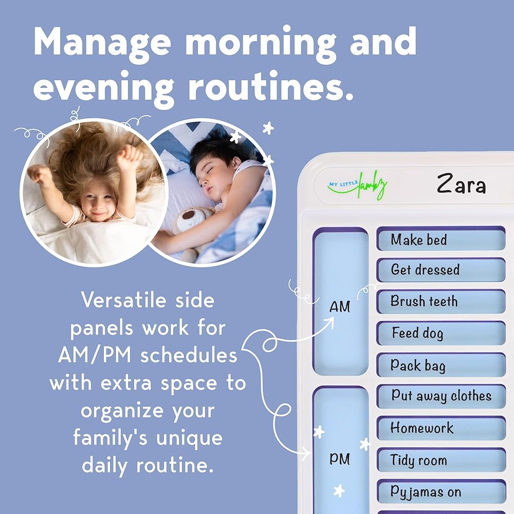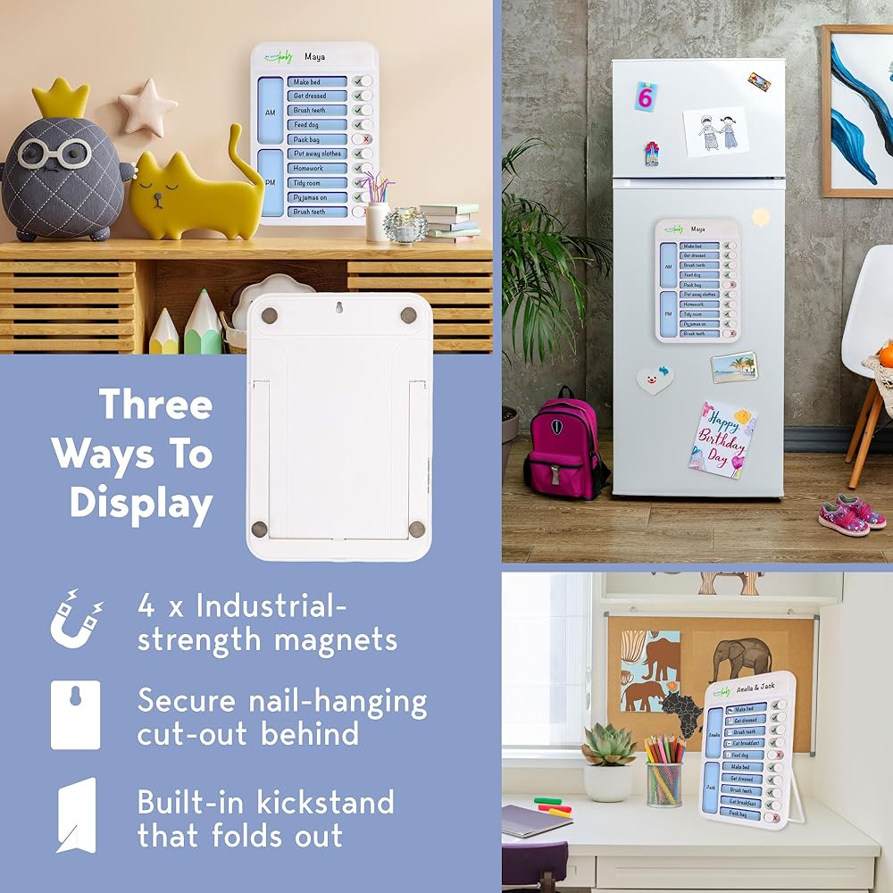 • ودية متعددة الحيل: تعمل الألواح الجانبية متعددة الاستخدامات لجداول AM/PM أو أعمال الأطفال المتعددة - تتضمن ملصقات التخصيص للأسماء ومساحة إضافية لتنظيم روتين عائلتك اليومي الفريد.